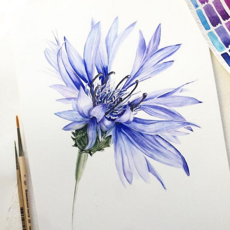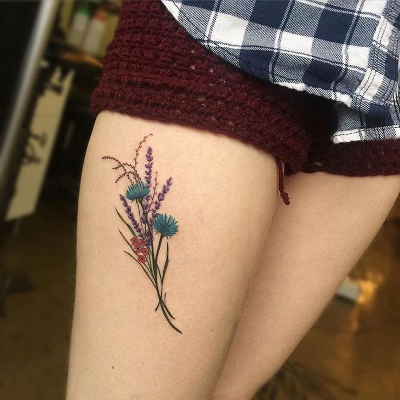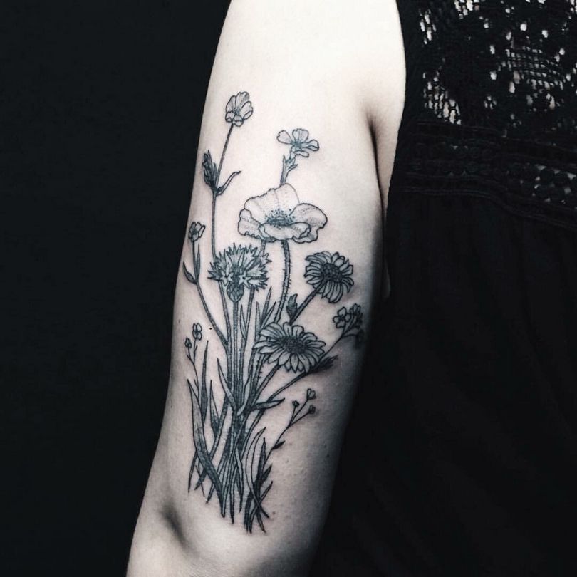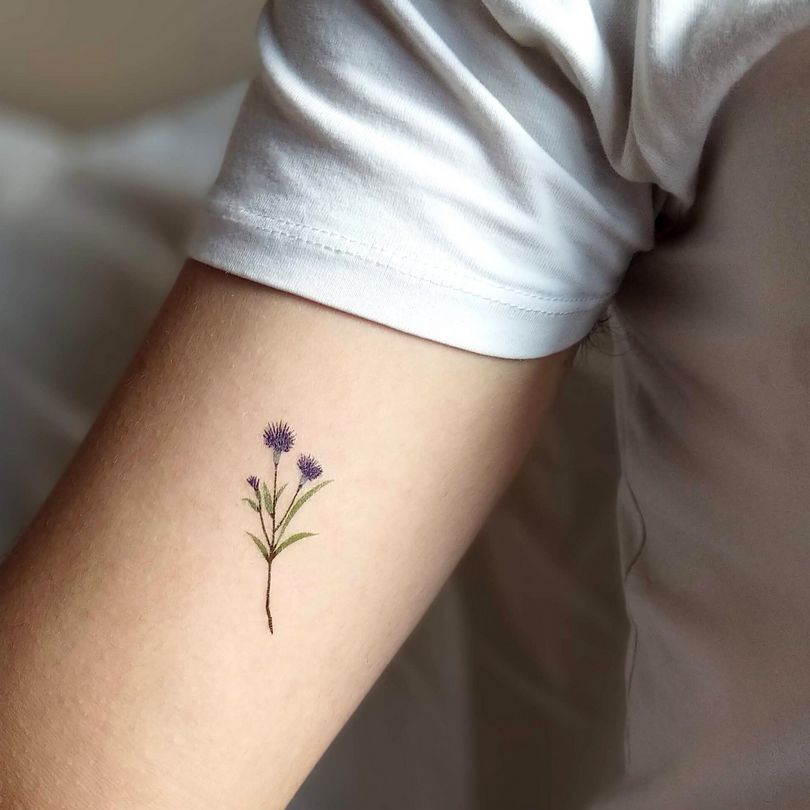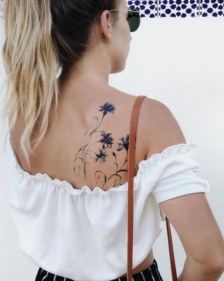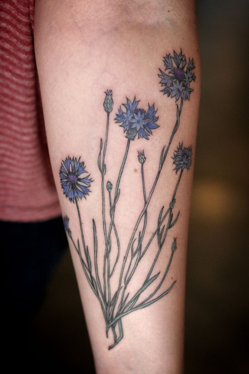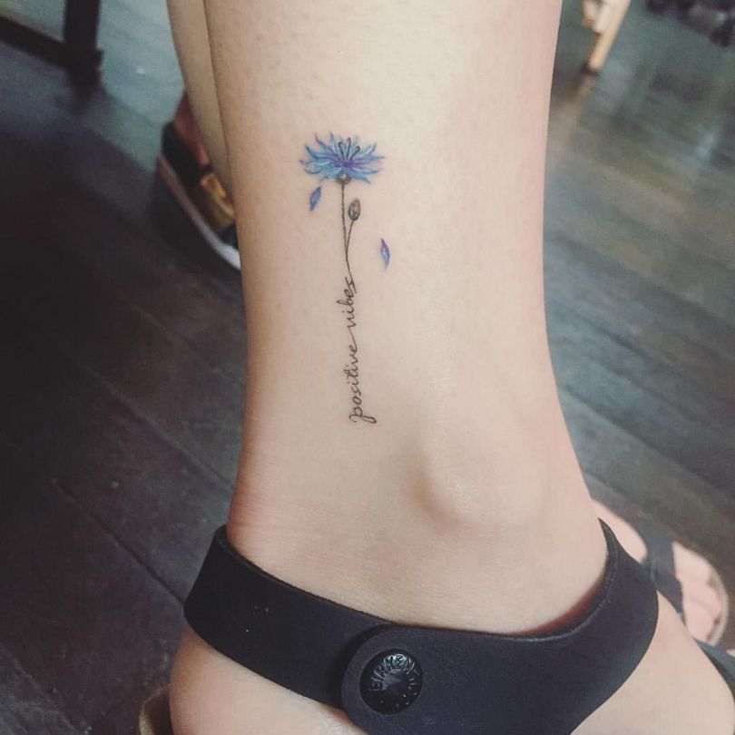 Tatouage bleuet - significations pour les filles et les hommes, où l'appliquer (sur le bras, la jambe, la clavicule, le poignet), croquis originaux et idées de photos