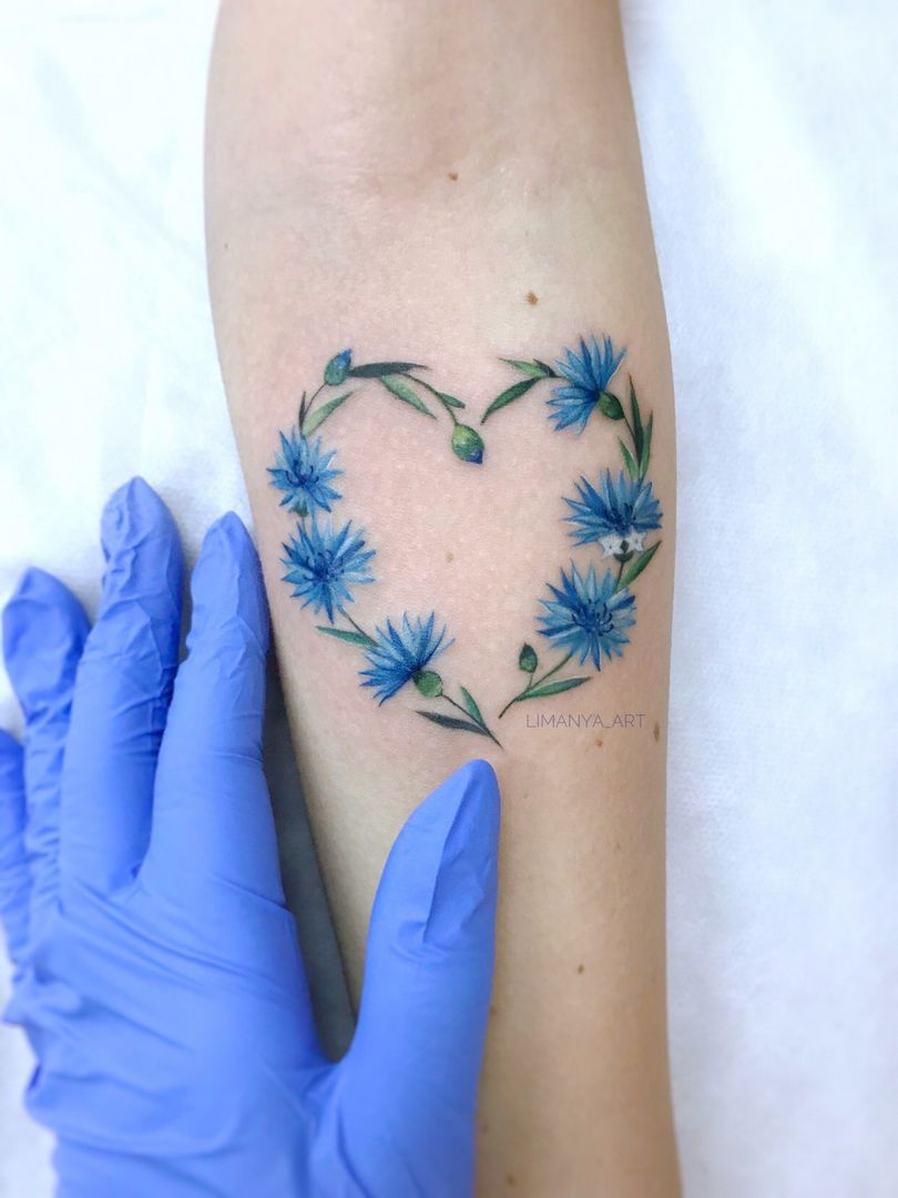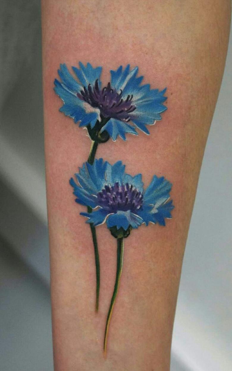 Des exemples de modèles peuvent être consultés sur notre site web ci-dessous. Voici les variantes les plus diverses du tatouage bleuet terminé, des photos et des vidéos détaillant le déroulement du projet dans le salon. Vous pouvez consulter un maître, qui connaît de nombreuses astuces pour améliorer l'idée.