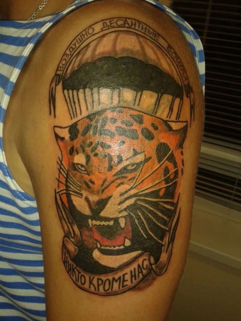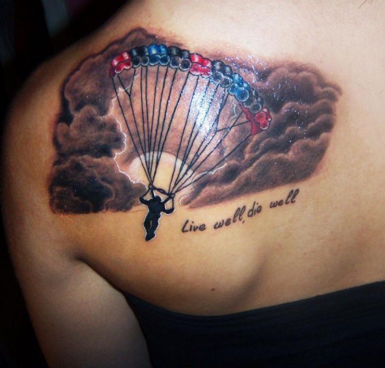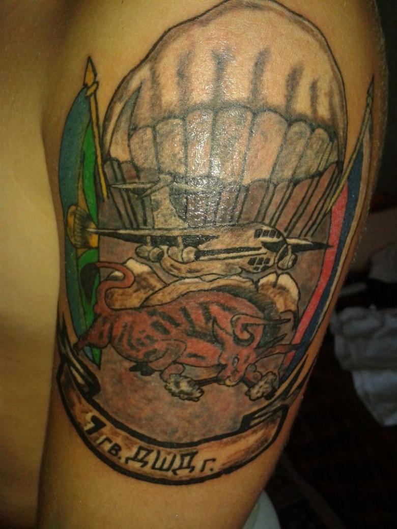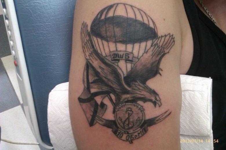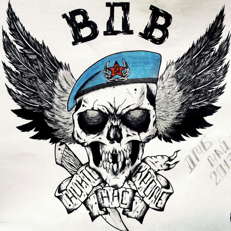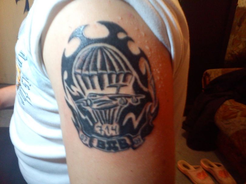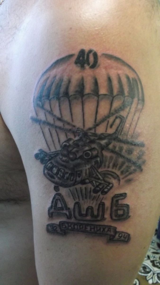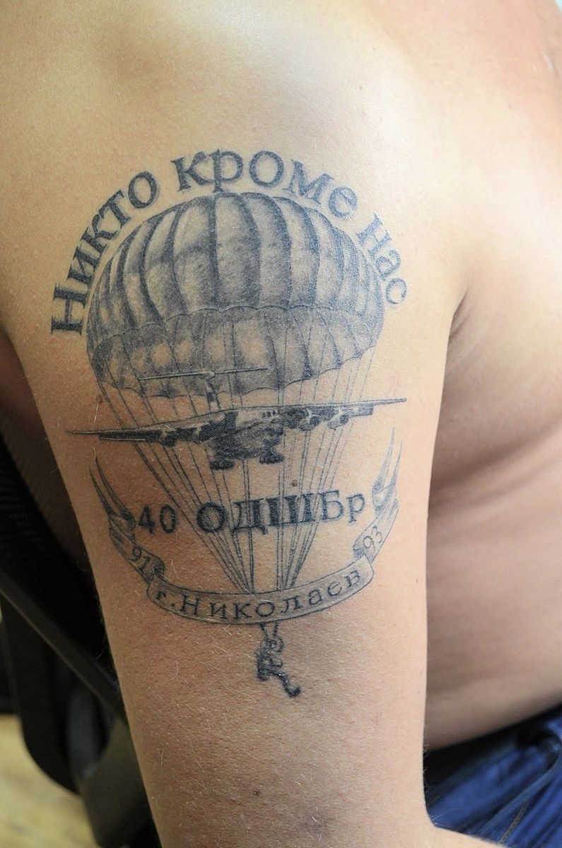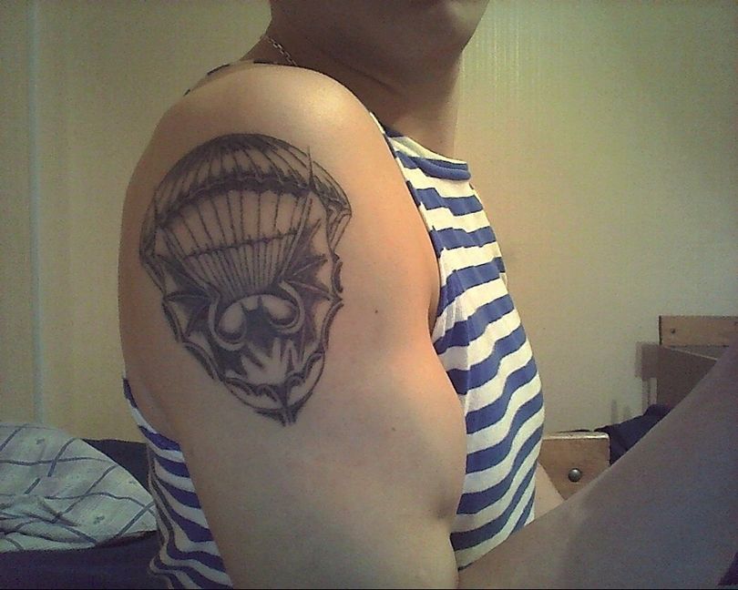 Ce modèle est le plus populaire. Placez cette inscription généralement sur la poitrine ou le bras gauche. Un tel tatouage a plusieurs significations et interprétations. Tout d'abord, grâce à ce signe de reconnaissance, le parachutiste trouvera toujours un camarade pour une discussion à cœur ouvert. L'emplacement du tatouage n'est pas non plus aléatoire. La partie inférieure du bras gauche est rarement couverte par des vêtements, ce qui permet aux parachutistes de se reconnaître dans une foule.