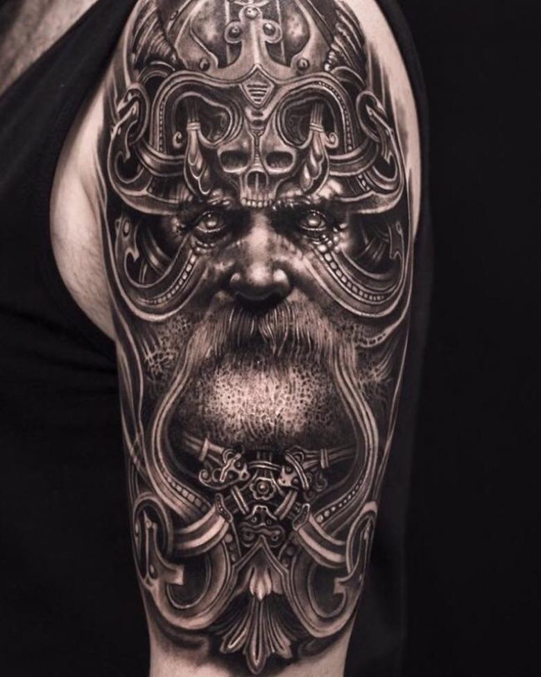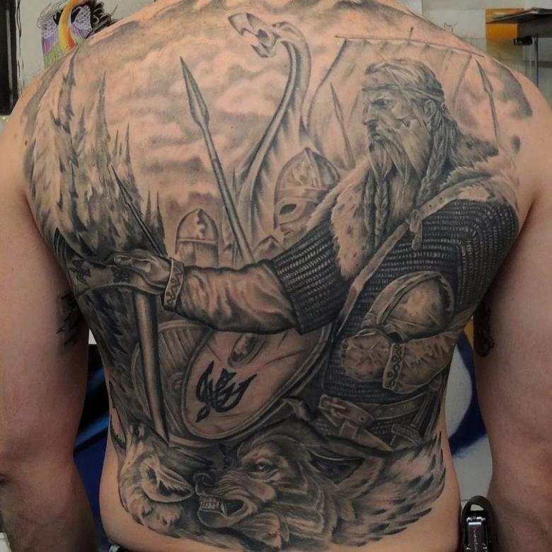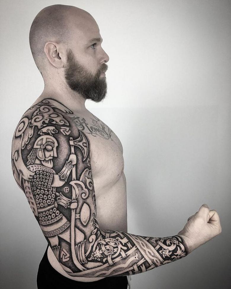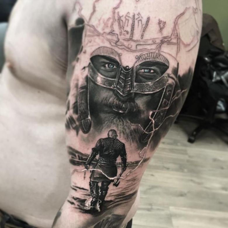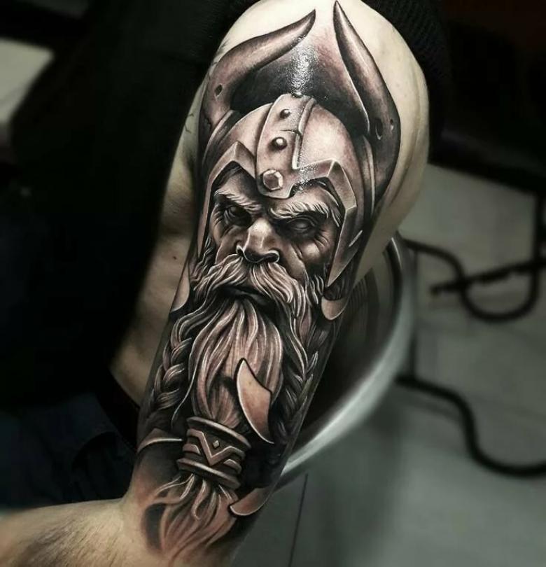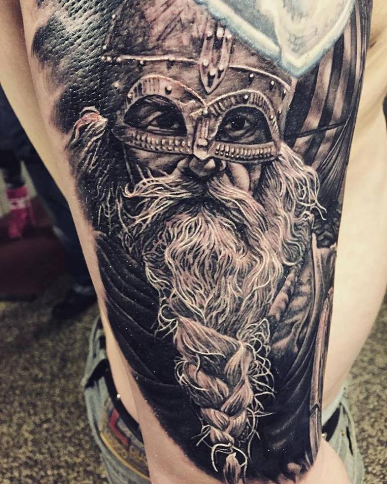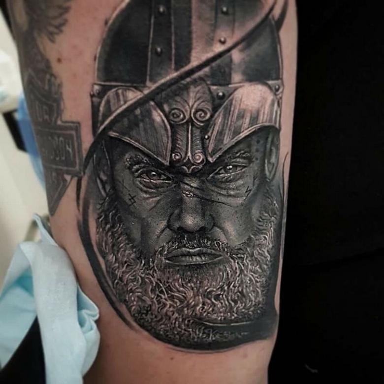 Les tatoueurs sont minutieusement détaillés pour capturer les muscles magnifiquement sculptés, les barbes tressées et les lignes gracieuses d'un bouclier ou d'un casque. Ceci est facilité par les nombreuses photos d'armes ou d'armures réelles qui servent d'excellents exemples.