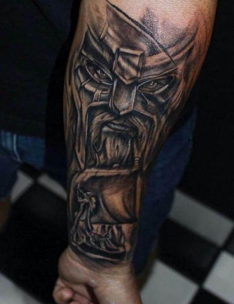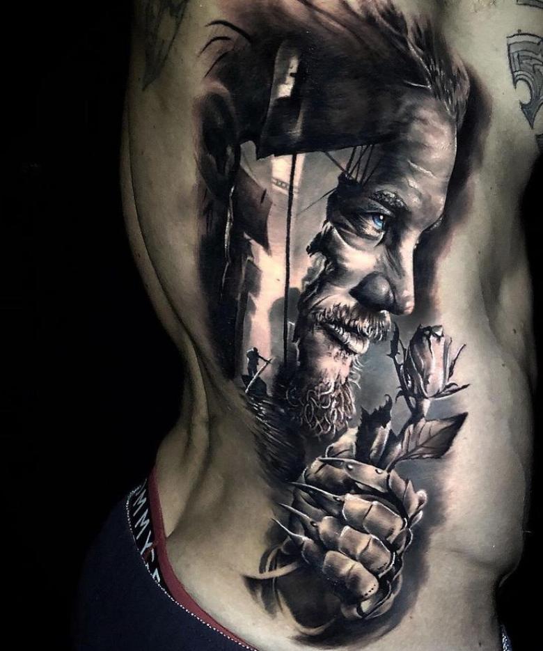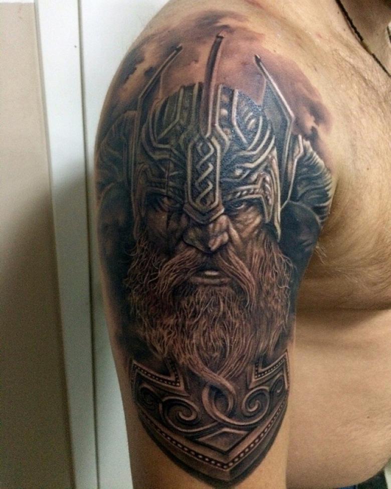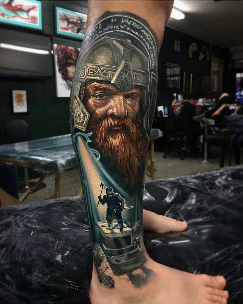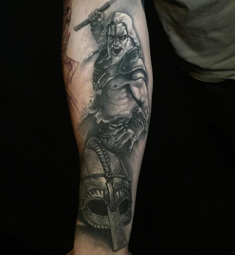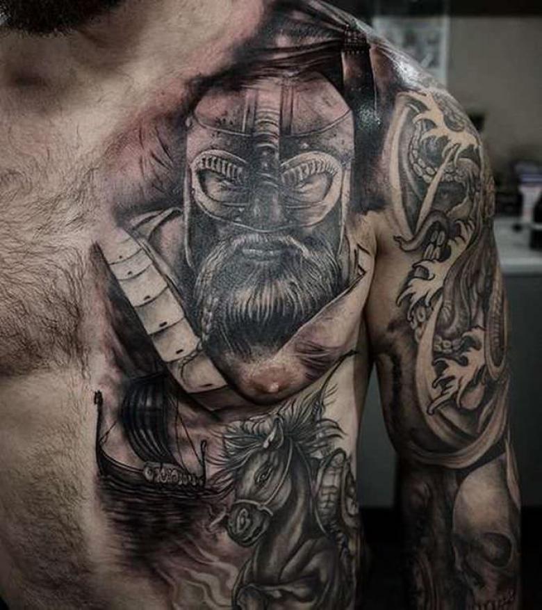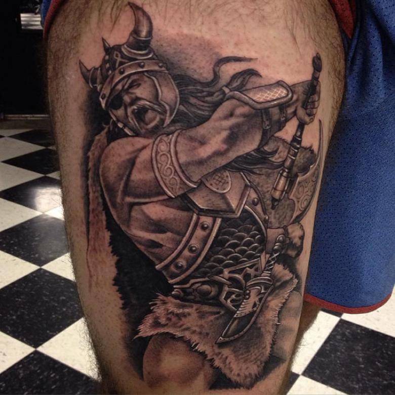 Les tatoueurs sont minutieusement détaillés pour capturer les muscles magnifiquement sculptés, les barbes tressées et les lignes gracieuses d'un bouclier ou d'un casque. Ceci est facilité par les nombreuses photos d'armes ou d'armures réelles qui servent d'excellents exemples.