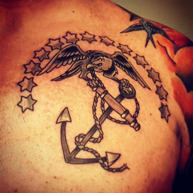 Les tatouages militaires ne sont pas rares chez les hommes. Les tatouages de la marine sont d'autant plus courants chez les marins, et ils se déclinent en une grande variété de motifs. Ce symbolisme est populaire dans le monde entier, car l'amour de la mer et le souvenir des années de service militaire jouent un grand rôle dans la vie de nombreux hommes.