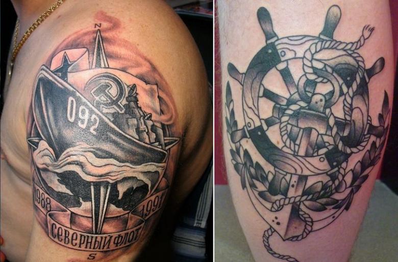 Tattoo Navy - liste des significations, utilisation des noms (Nord, Baltique, Mer Noire, Pacifique), croquis intéressants et idées de photos