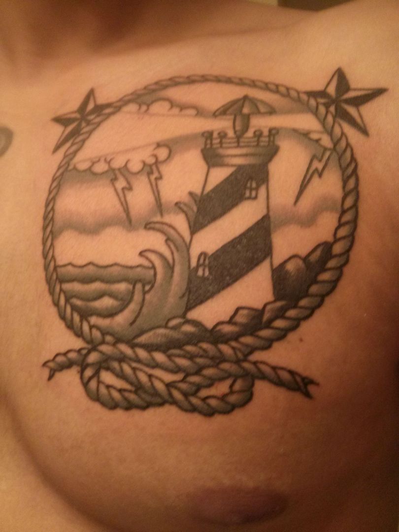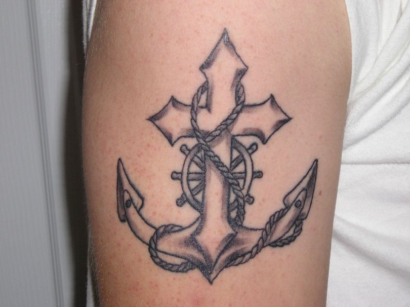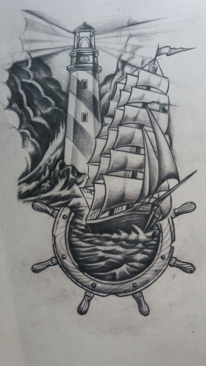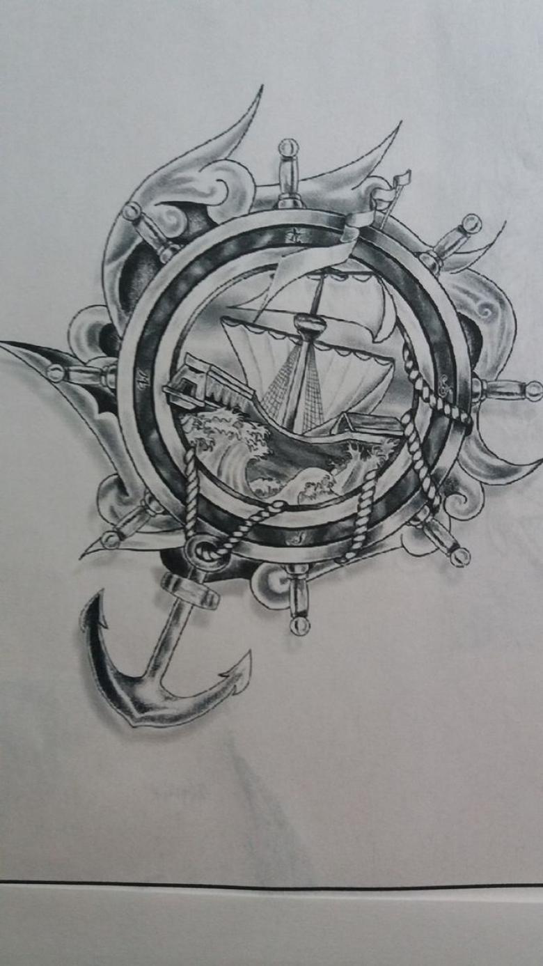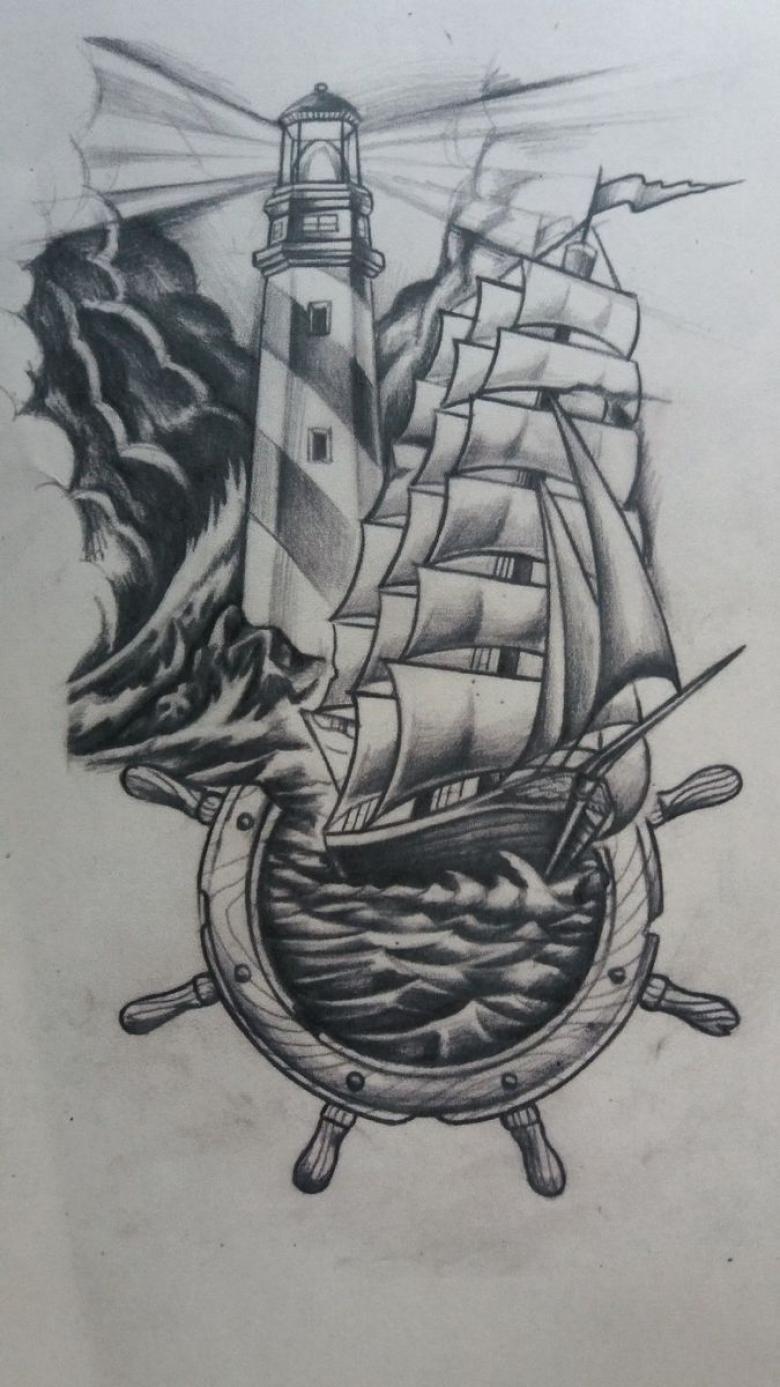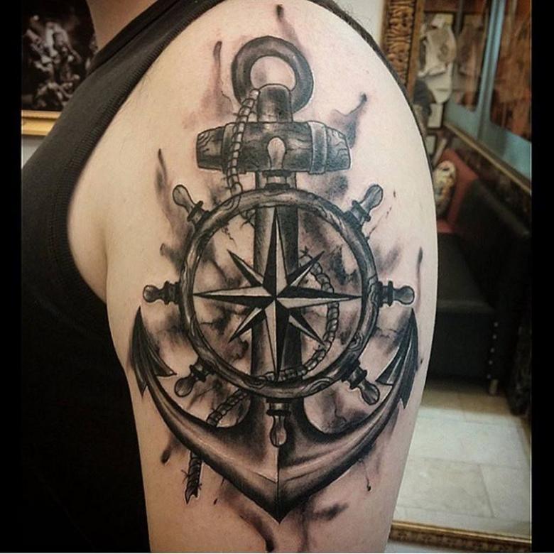 - La barre d'un navire - une incarnation de l'amour du voyage en mer, de la capacité à tracer sa route et à suivre ses plans. Ce tatouage de la marine est souvent porté par les capitaines et les timoniers. En alliance avec les ancres, les cordes - la capacité de vaincre les obstacles.