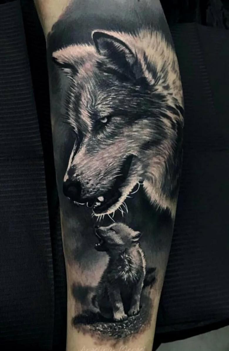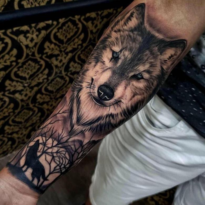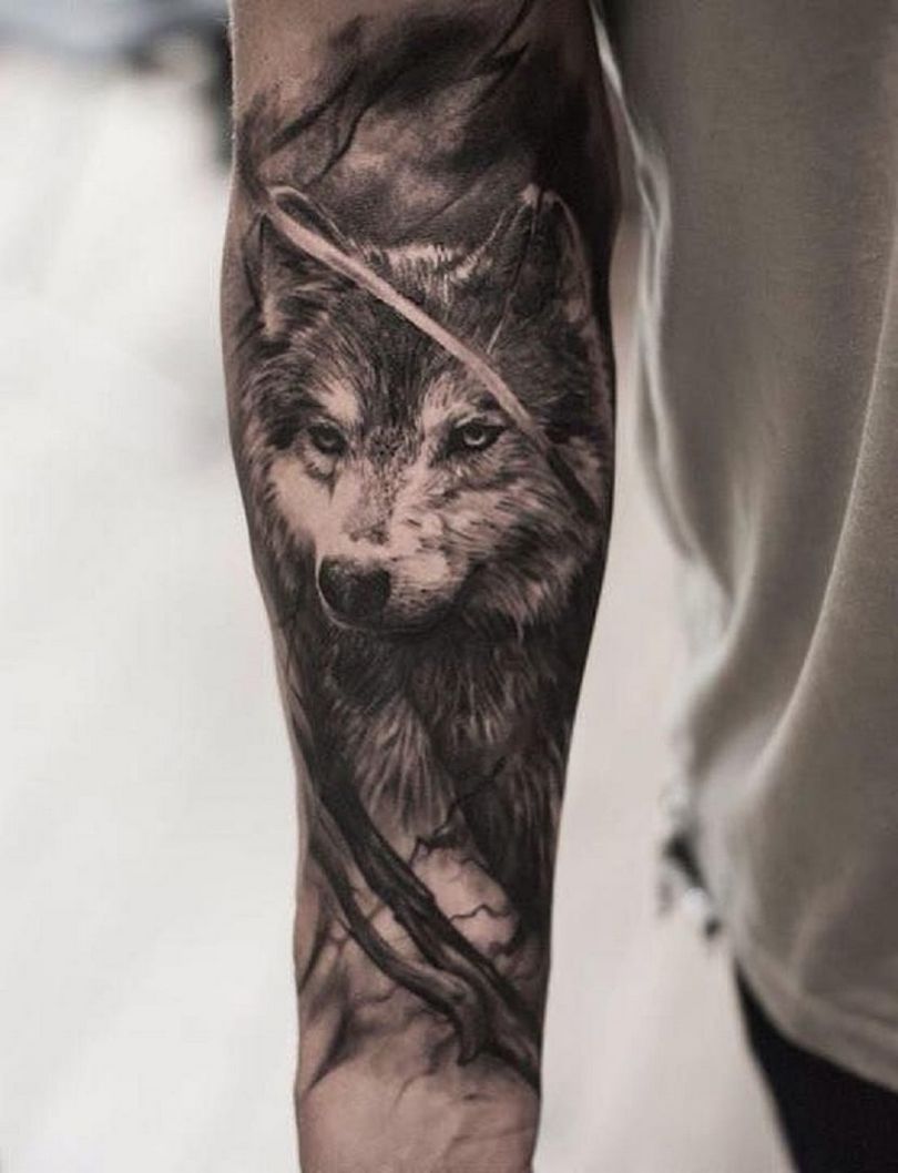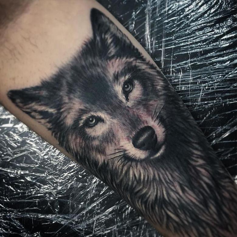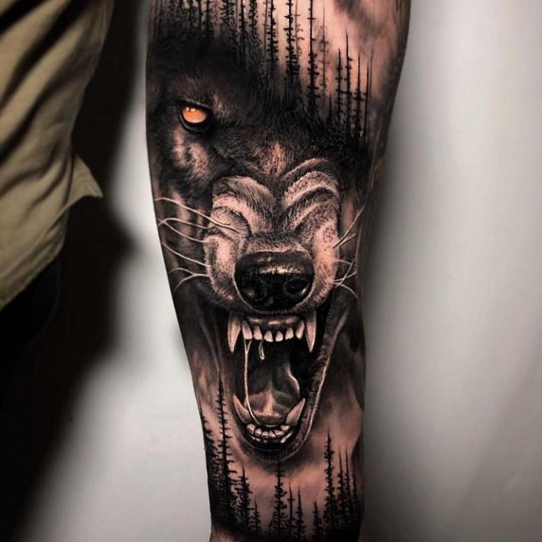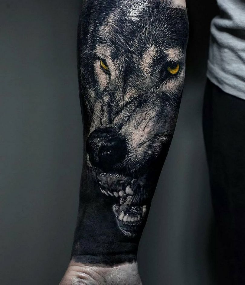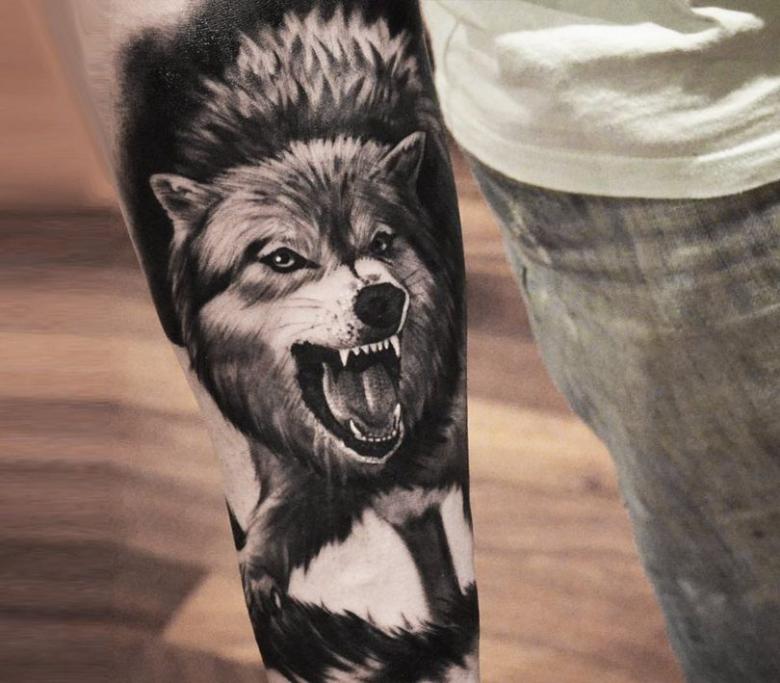 L'une des tendances les plus populaires pour le tatouage des loups est le style réaliste. Le dessin est principalement réalisé en une seule couleur. De tels tatouages sur le bras sont très efficaces. Sur le corps masculin, elles symbolisent l'agressivité et la colère.