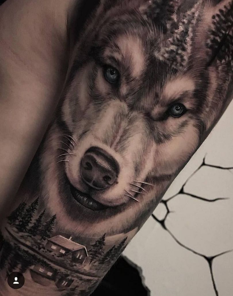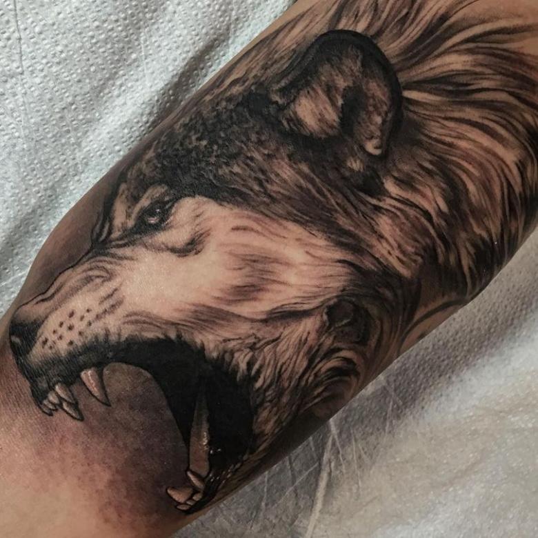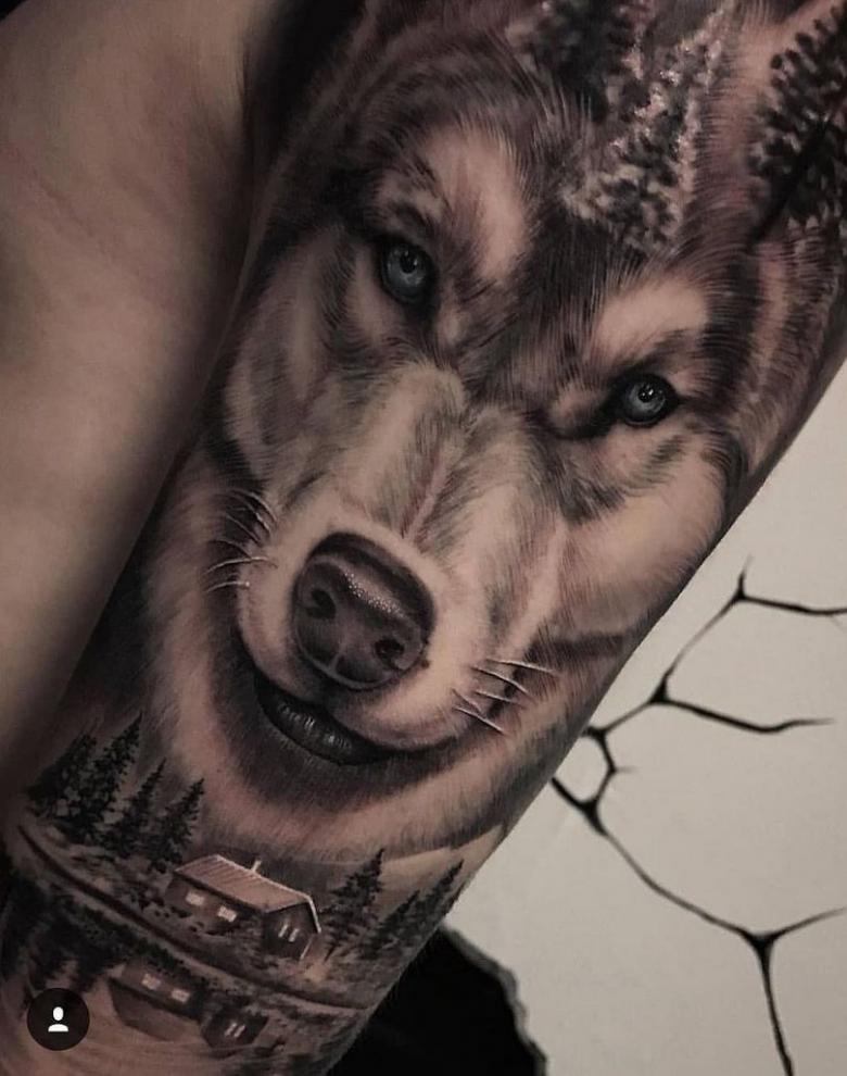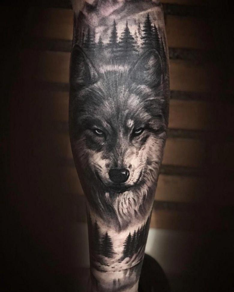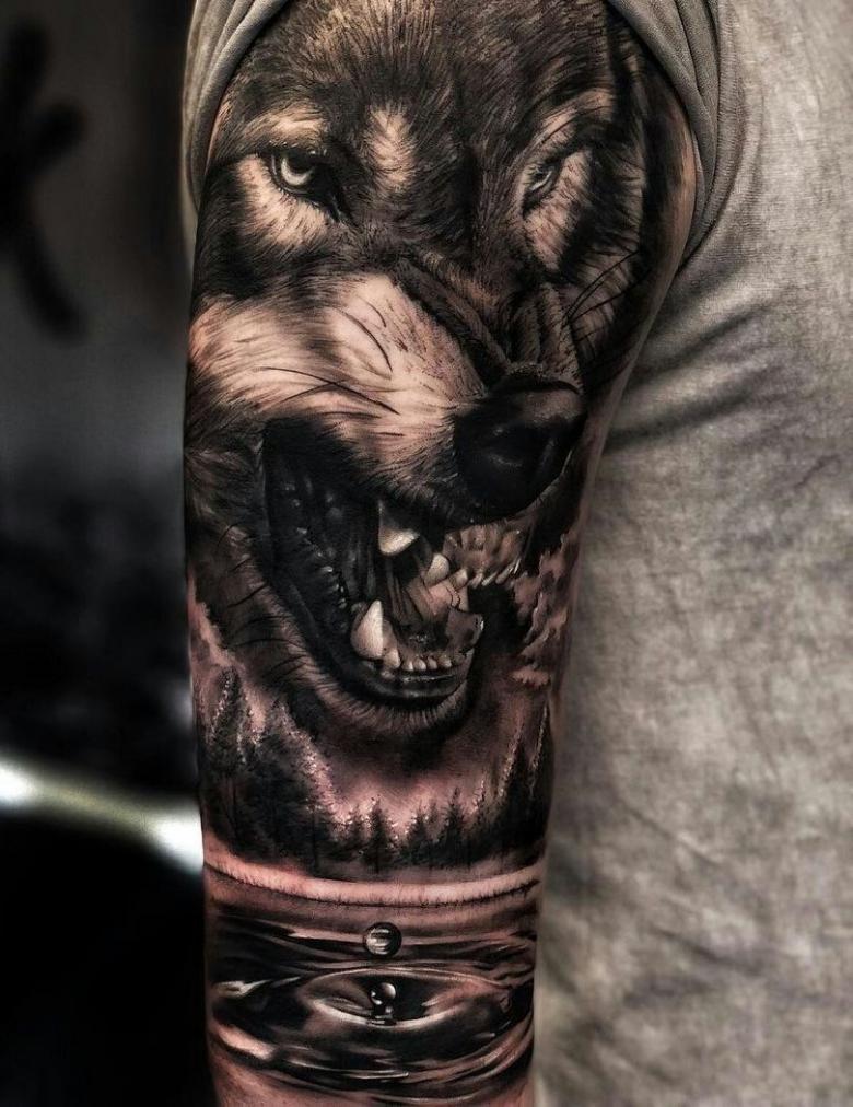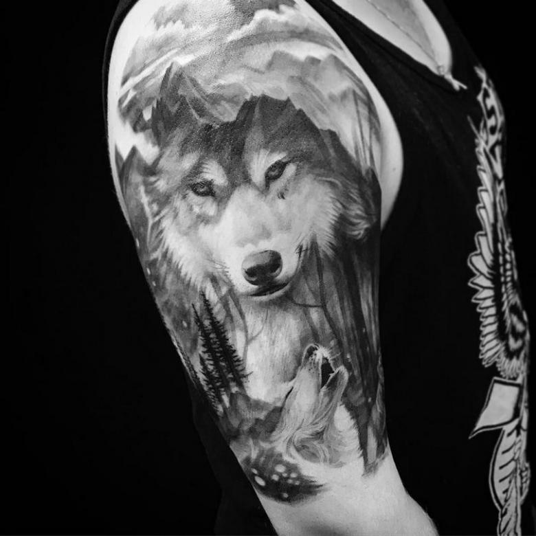 L'une des tendances les plus populaires pour le tatouage des loups est le style réaliste. Le dessin est principalement réalisé en une seule couleur. De tels tatouages sur le bras sont très efficaces. Sur le corps masculin, elles symbolisent l'agressivité et la colère.