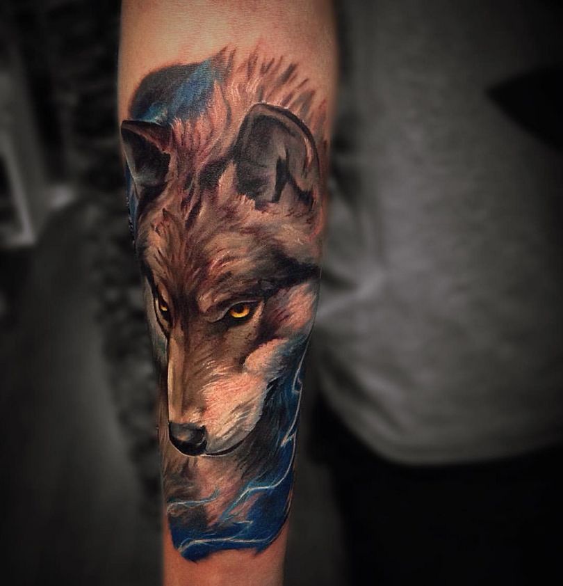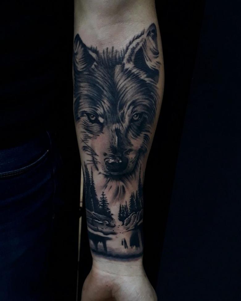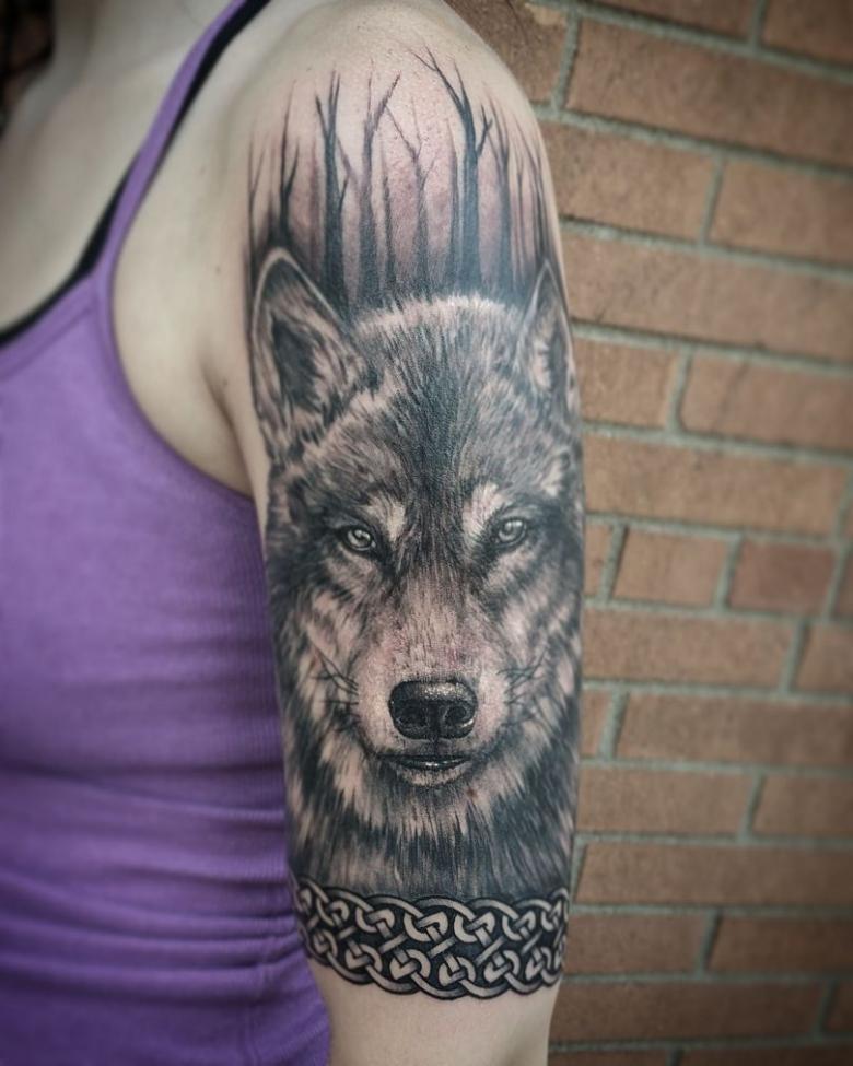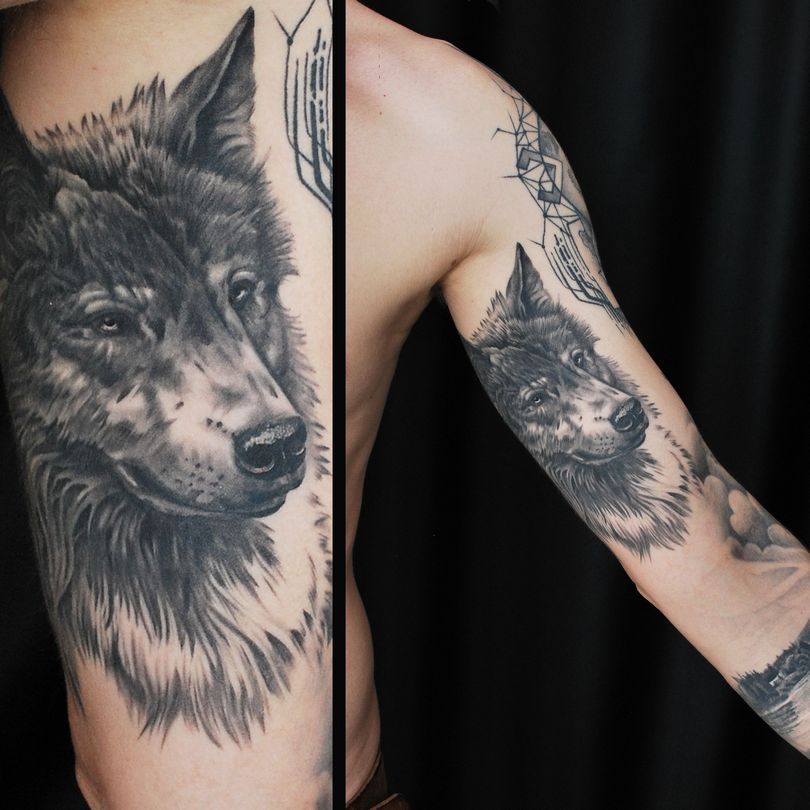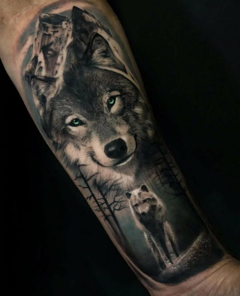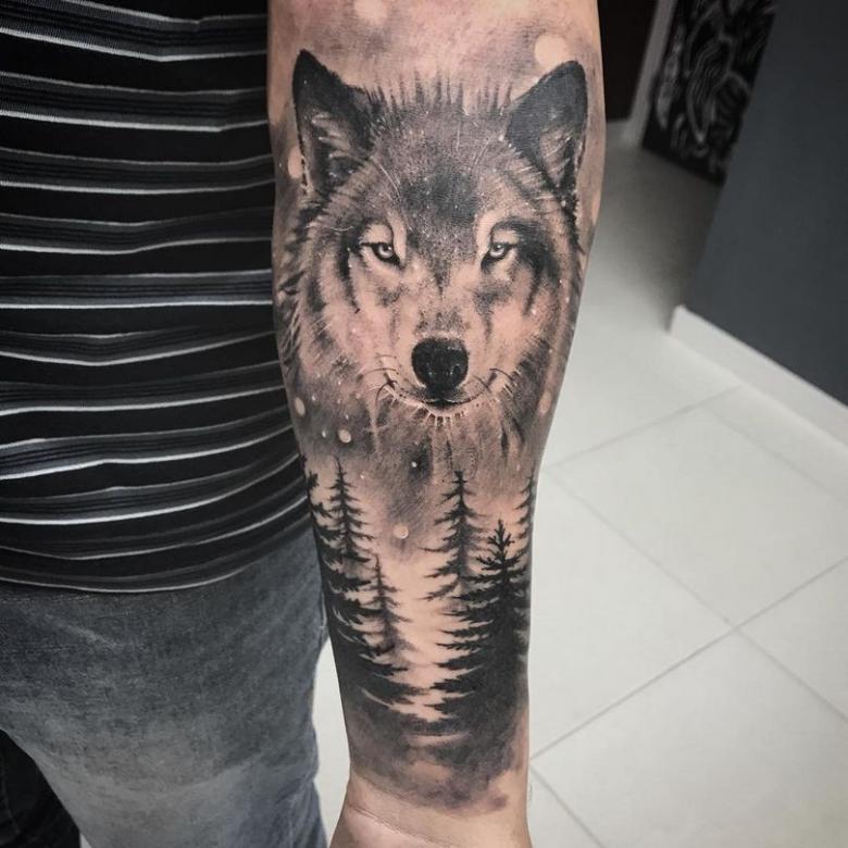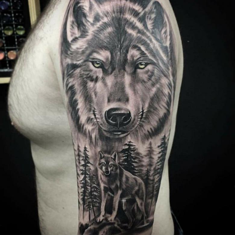 L'une des tendances les plus populaires pour le tatouage des loups est le style réaliste. Le dessin est principalement réalisé en une seule couleur. De tels tatouages sur le bras sont très efficaces. Sur le corps masculin, elles symbolisent l'agressivité et la colère.