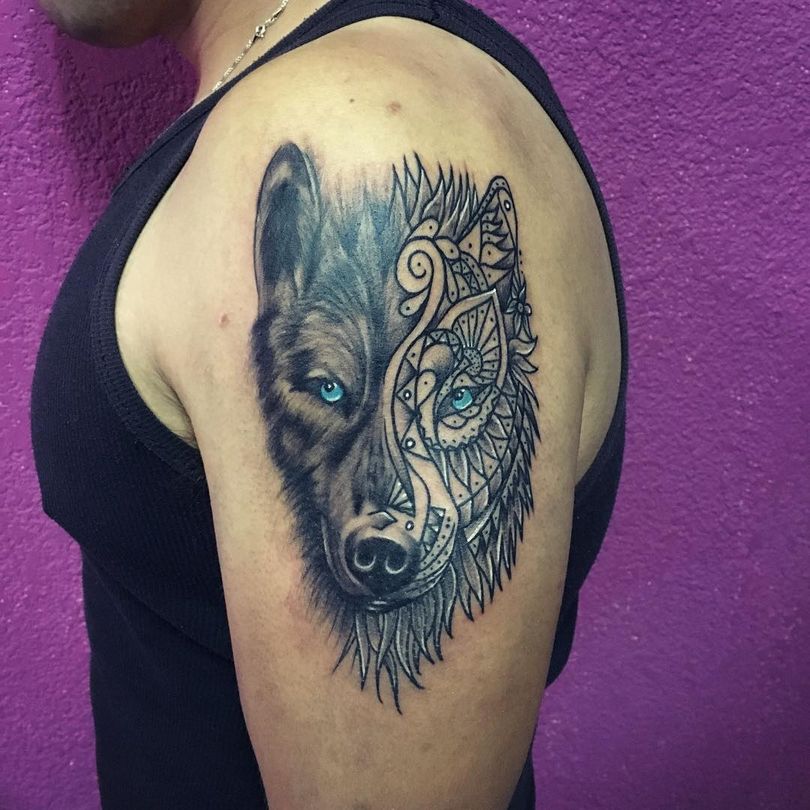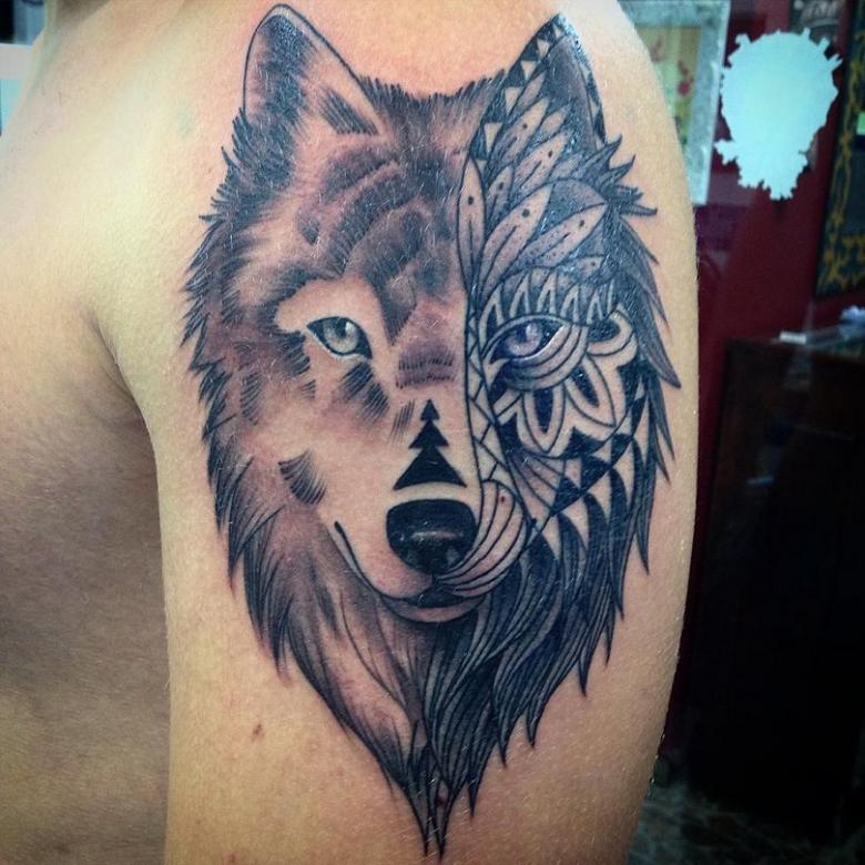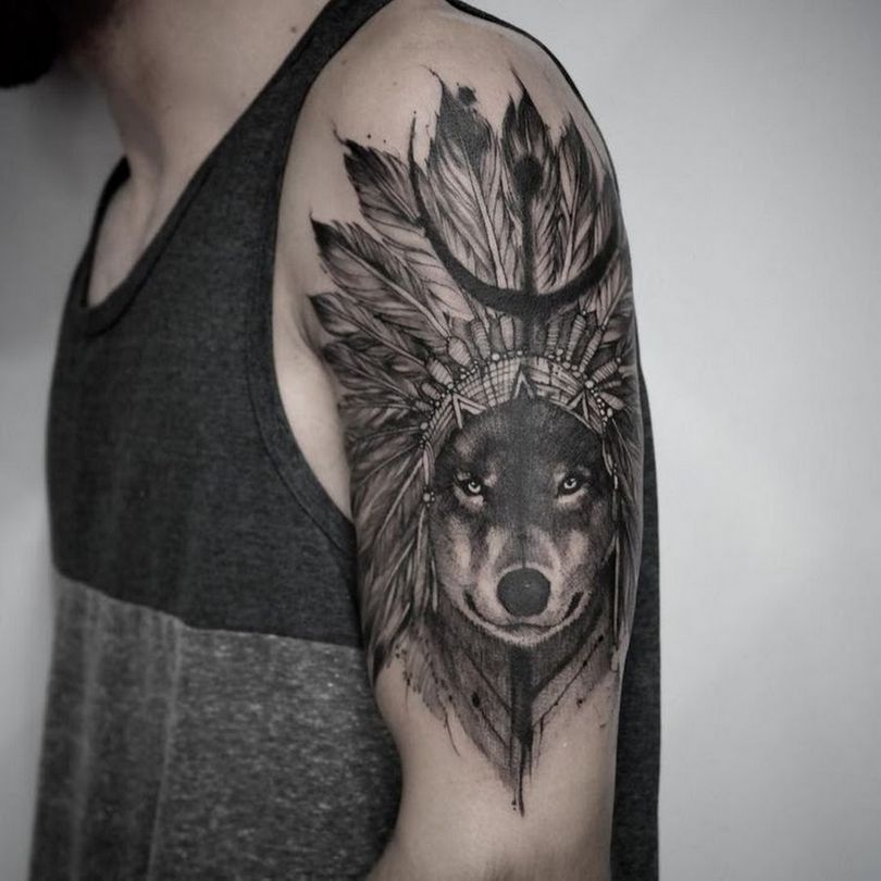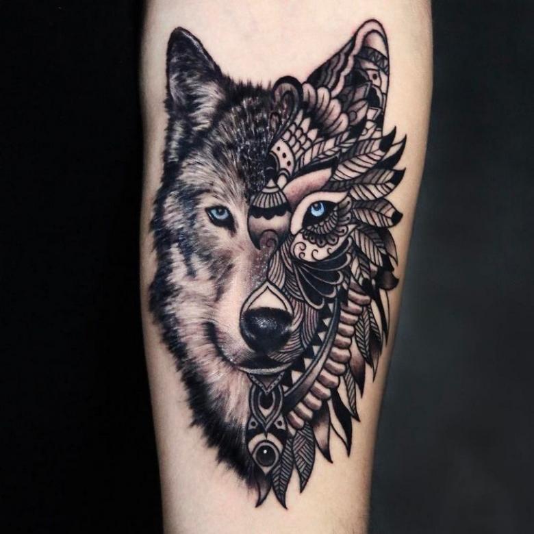 La signification de ces tatouages pour un homme peut être très différente. Porter des images avec un loup est propre aux personnes courageuses, braves, fortes et persistantes. Très souvent, on y trouve la photo d'un animal au regard très perçant, ou même aux traits humains. Les bêtes inapprochables et rudes sont représentées dans des motifs indiens.