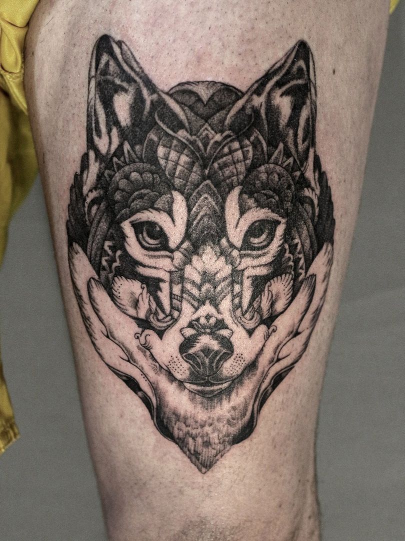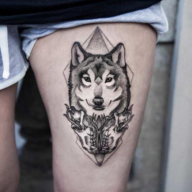 Les personnes sûres d'elles, indépendantes et capables de défendre leurs intérêts se font souvent tatouer un loup comme talisman, qui les protège des difficultés et des ennuis.