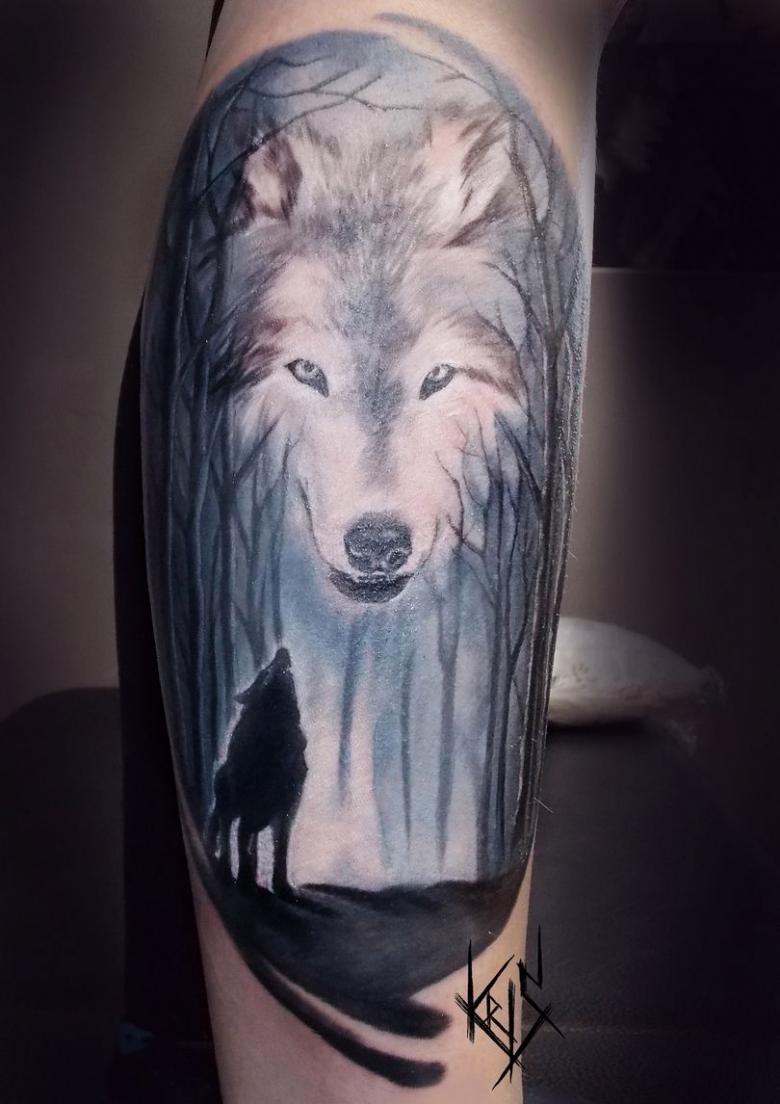 La loyauté et la fidélité des loups sont universellement connues. Si le mâle meurt, la femelle lui reste fidèle pour le reste de sa vie. Par conséquent, une fille doit être prudente lorsqu'elle choisit un tel tatouage. Certaines femmes, déçues par leurs homologues masculins, se font tatouer comme symbole de solitude.