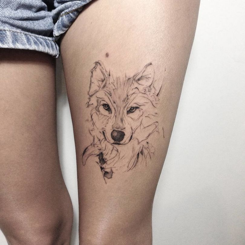 Les filles ont tendance à opter pour des tatouages ne représentant que le contour de la bête. Ou bien l'image du loup est accompagnée d'éléments supplémentaires : fleurs, motifs, ornements. De cette façon, des couleurs délicates sont ajoutées à la bête austère.