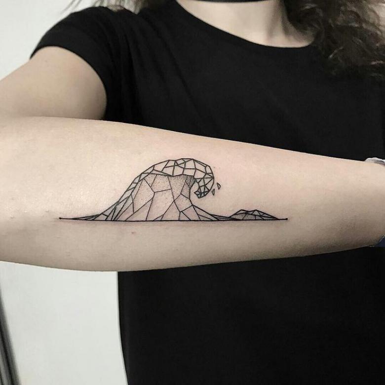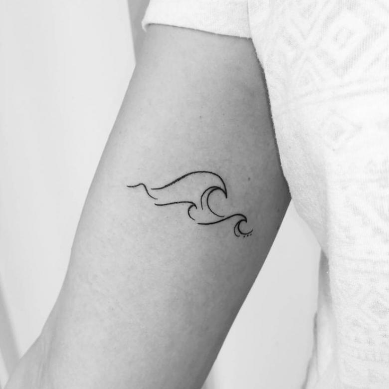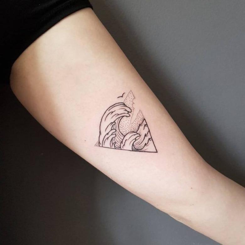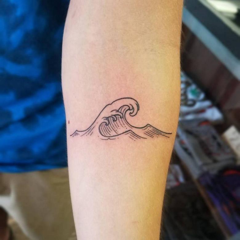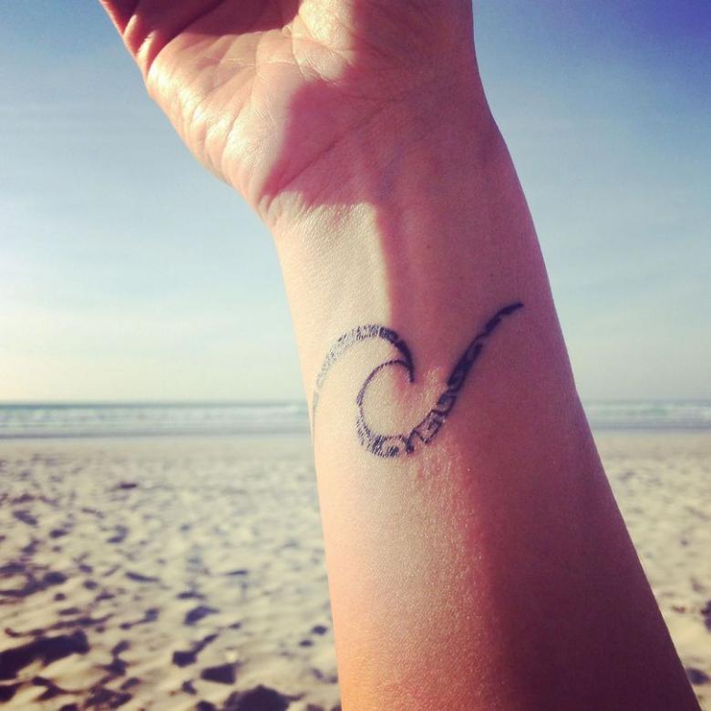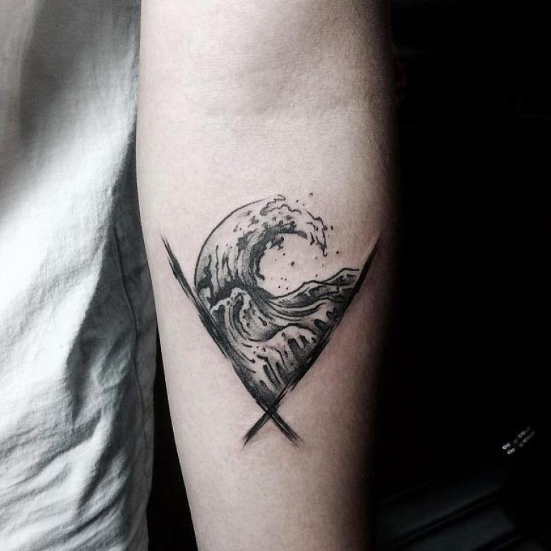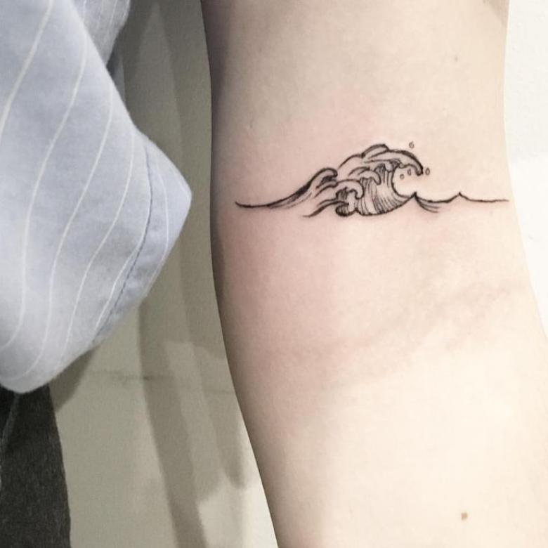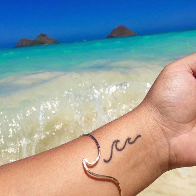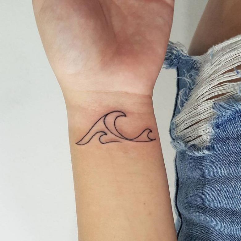 Cette image réduit le stress, bannit la tristesse et apaise. Les porteurs de tatouages en vague sont rationnels et peu enclins à la provocation. Il est courant pour les hommes de tracer des motifs de vagues dans un style minimaliste.