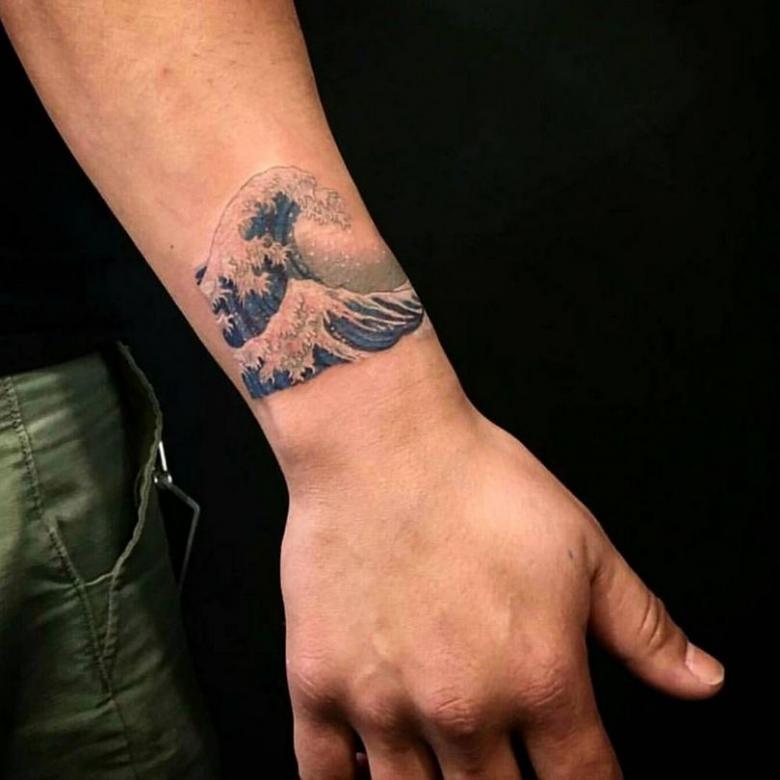 Chez les hommes, les tatouages de vagues accompagnés d'images de mouettes, de bateaux et de dauphins sont courants. En outre, le motif de la vague lui-même est réalisé dans une variété de variations :