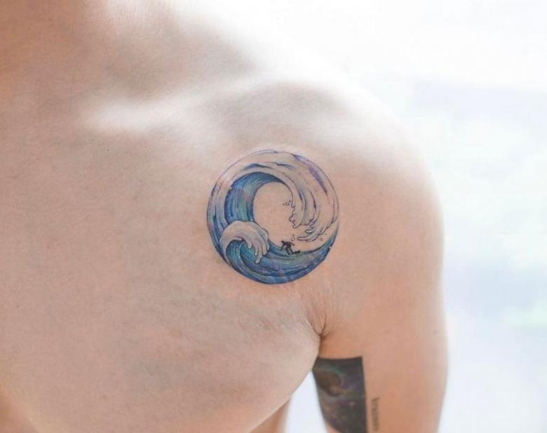 L'image d'une vague sur l'épaule est un symbole de développement personnel, un désir de maîtriser de nombreuses compétences. La fluidité de l'onde indique que rien n'est éternel.
