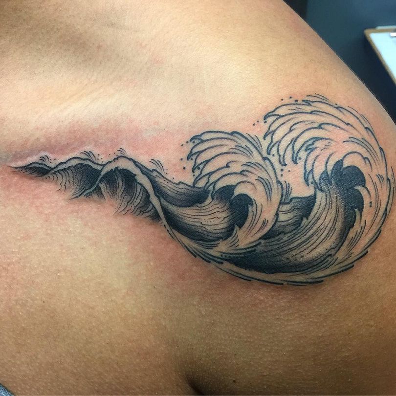 Vague de tatouage - options croquis, signification, emplacement, idées de photos intéressantes