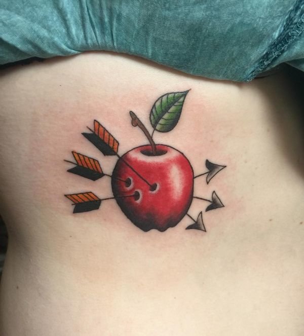 L'utilisation d'un tel tatouage peut témoigner d'une endurance de fer, d'une grande capacité de concentration et d'une grande persévérance face aux défis de la vie. Si vous voyez une pomme percée par une flèche sur le corps de quelqu'un, vous savez que cette personne a beaucoup de mérite et des talents variés.
