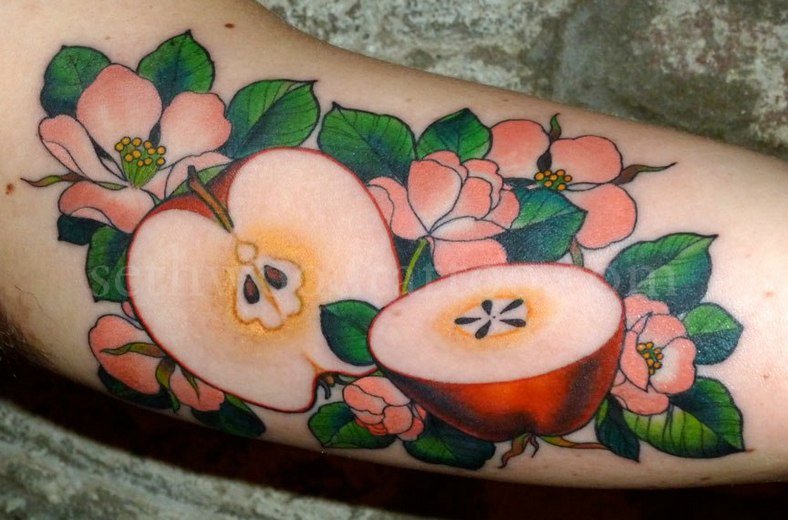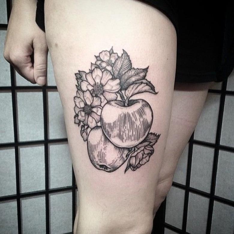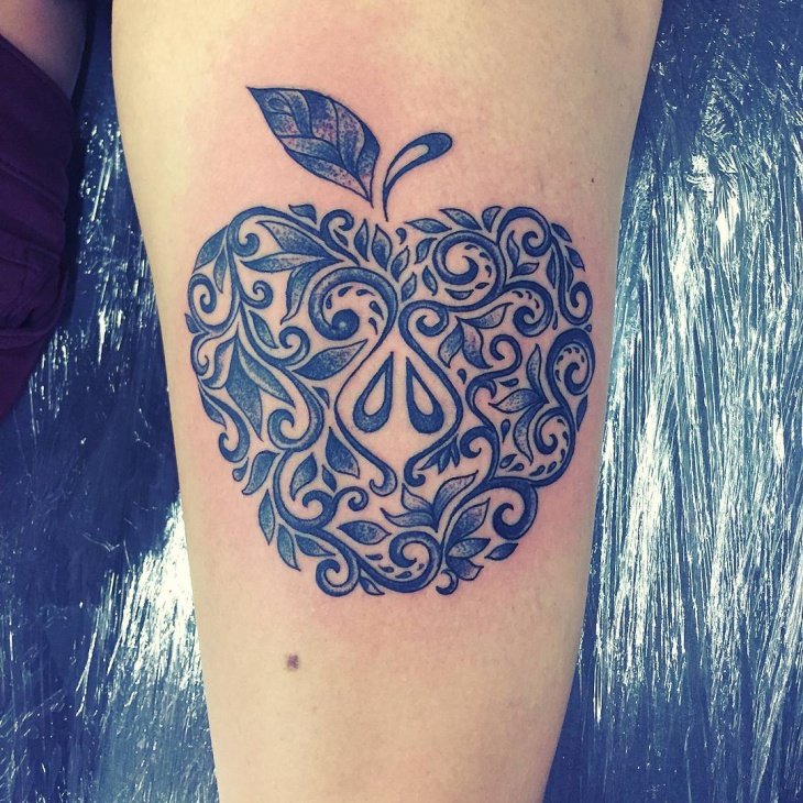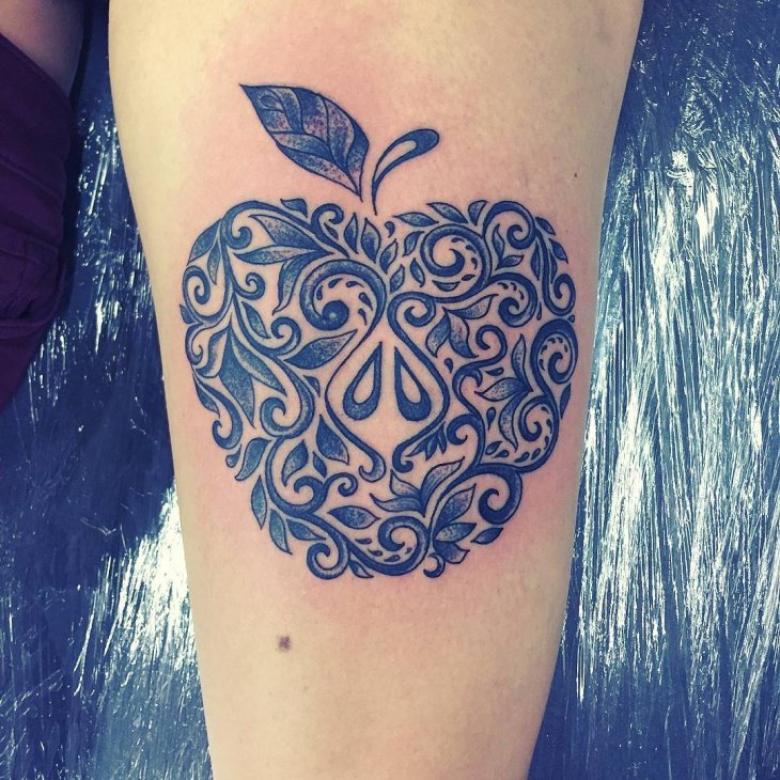 En analysant les exemples typiques de tatouages avec une pomme par photo, vous douterez sans doute longtemps de la parcelle à choisir, et de la partie du corps sur laquelle appliquer l'image. Ne négligez pas l'aide d'un spécialiste.