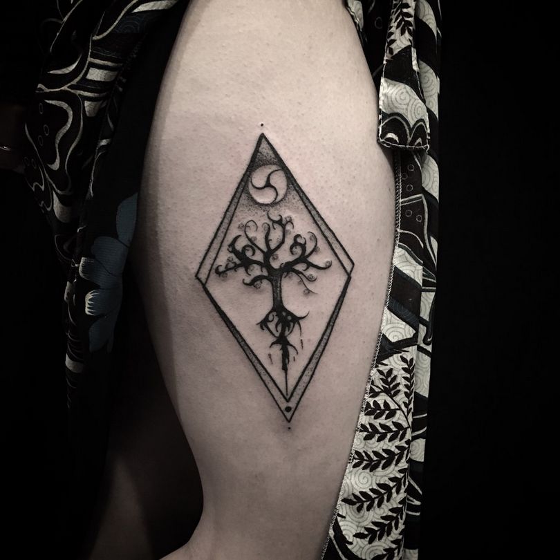 Il ne poursuit pas l'objectif de décorer le corps, grâce à l'image artistique. Le tatouage est appliqué avec une signification particulière - il dirige les flux d'énergie divine dans tout le corps. Par conséquent, tout le monde n'était pas autorisé à utiliser un tatouage au symbolisme spécifique.