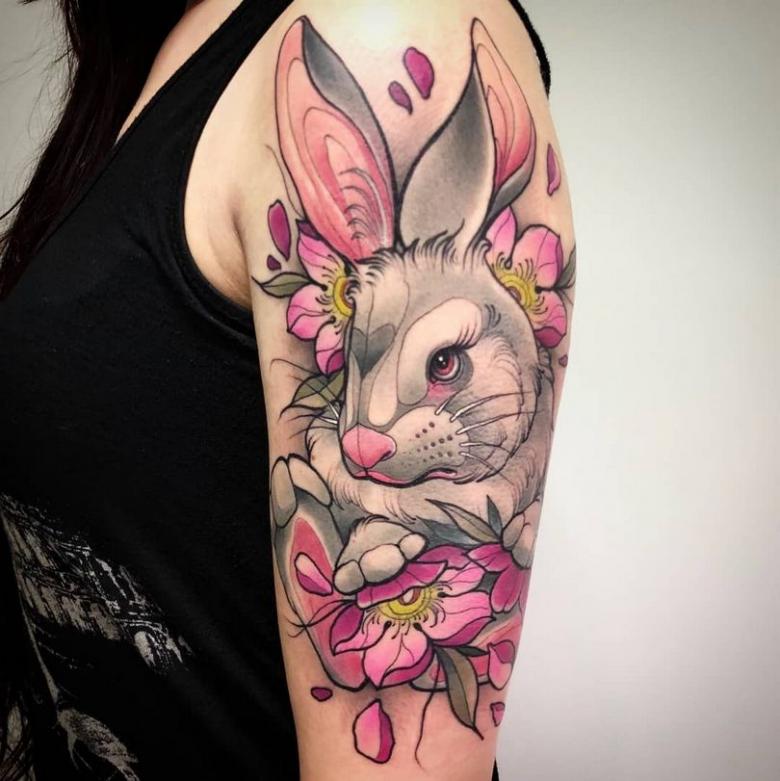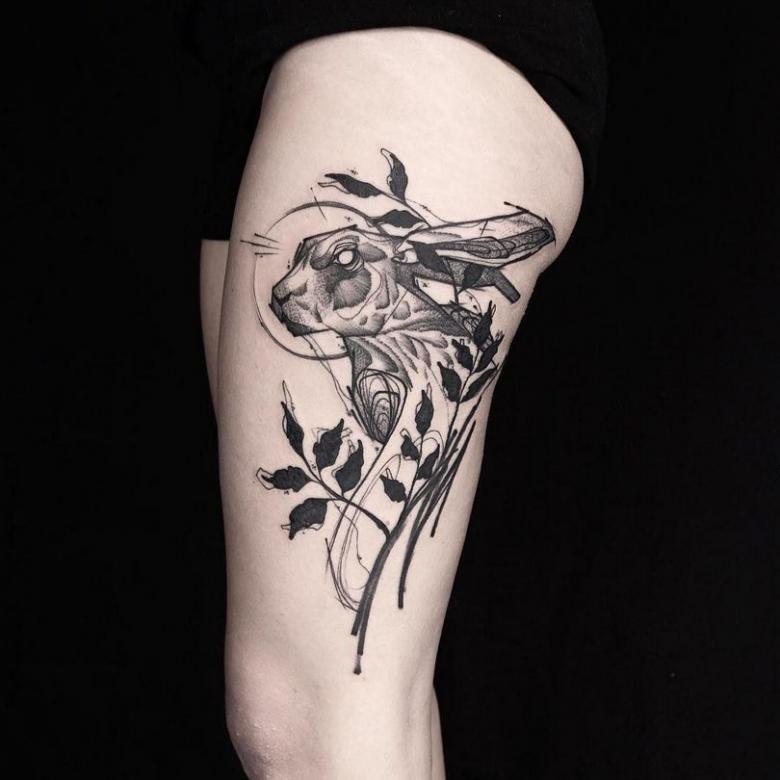 Tatouage d'un lièvre - significations pour les filles et les hommes, styles populaires, dessins attrayants, photos et vidéos
