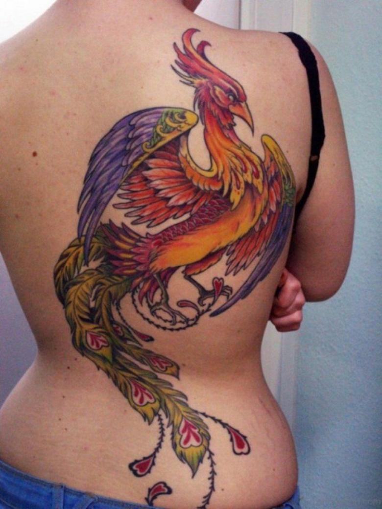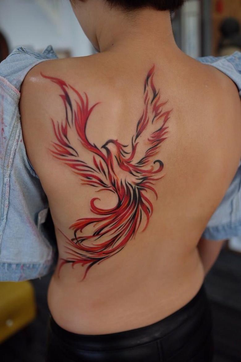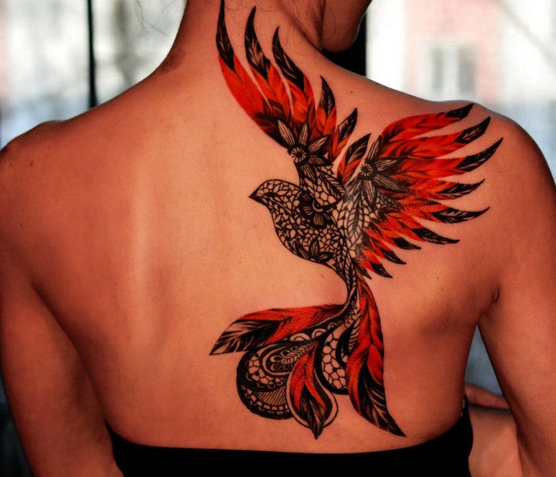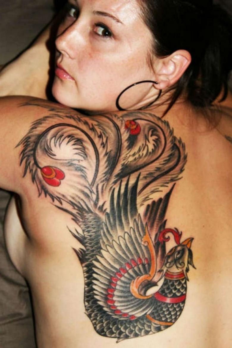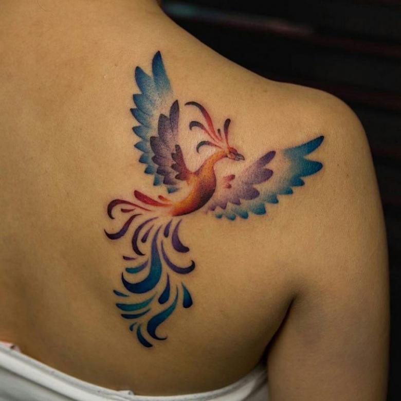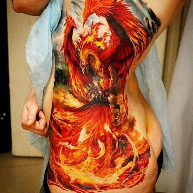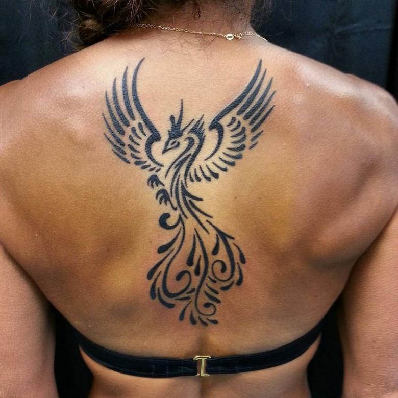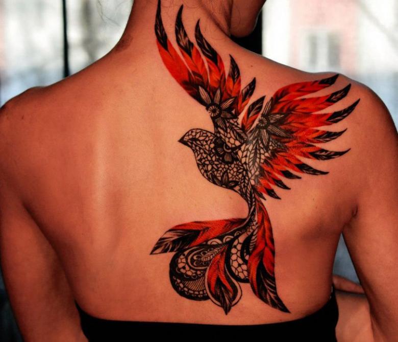 Tatouage de l'oiseau de feu - significations pour les filles et les hommes, le lieu d'application (sur le bras, la cuisse, le dos, le ventre), de beaux dessins et des idées de photos