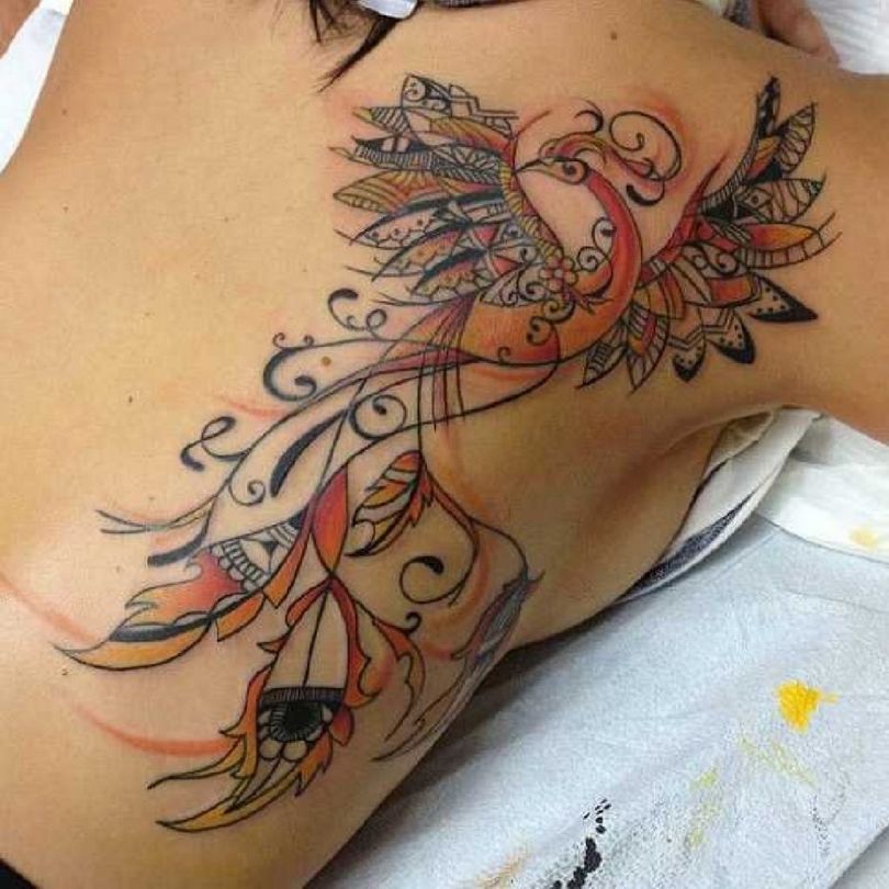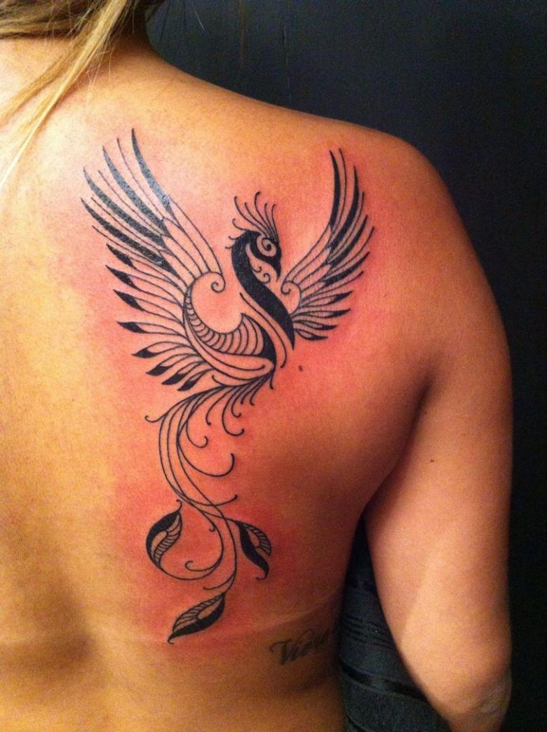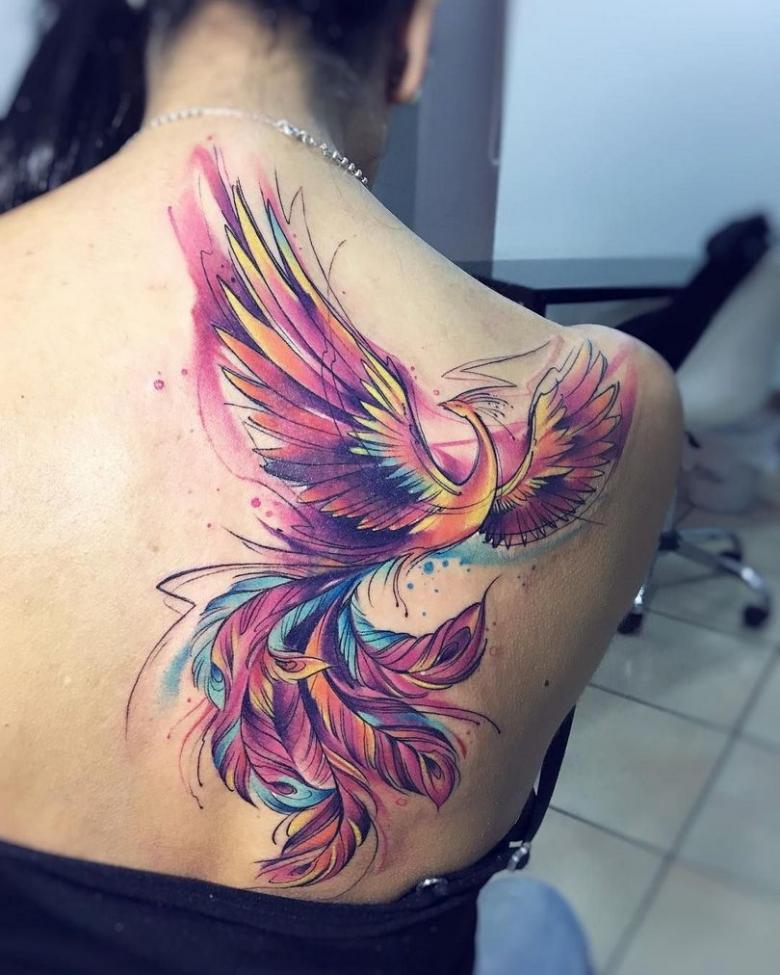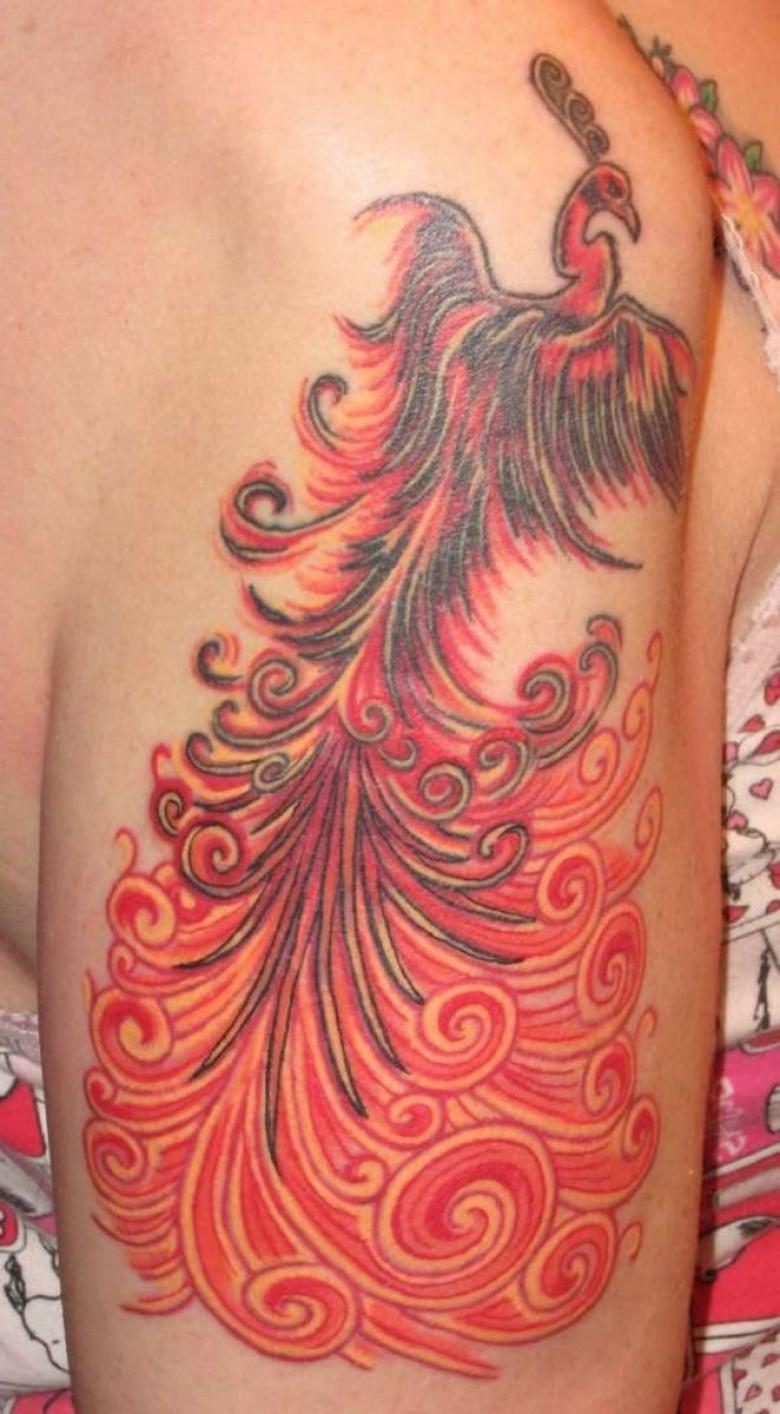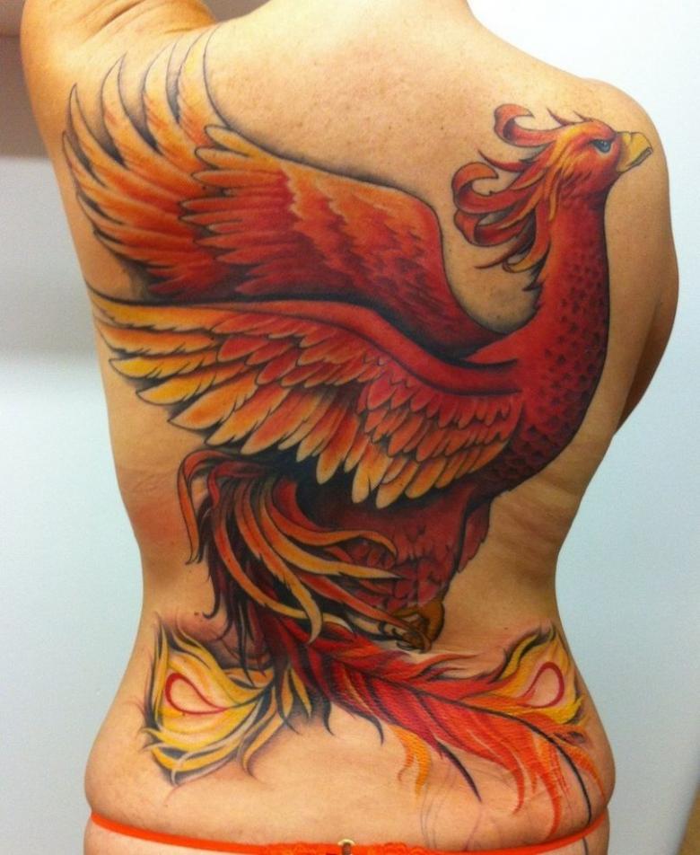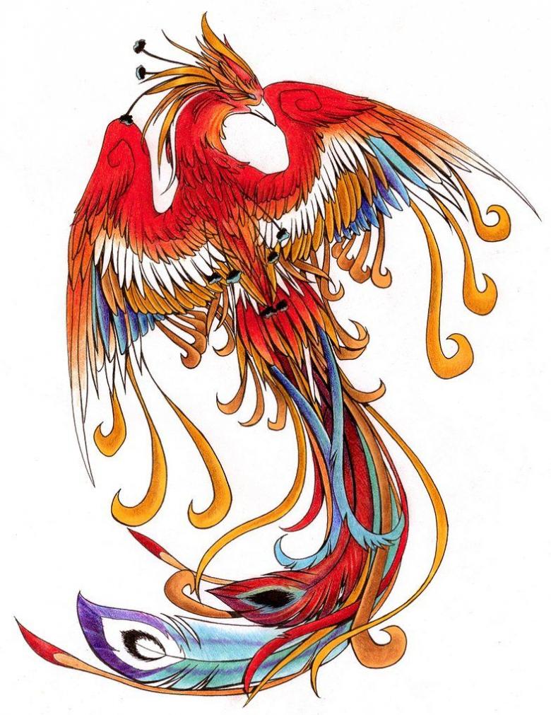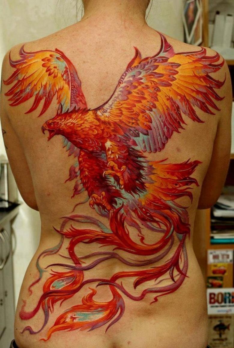Tatouage de l'oiseau de feu - significations pour les filles et les hommes, le lieu d'application (sur le bras, la cuisse, le dos, le ventre), de beaux dessins et des idées de photos