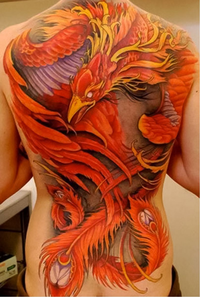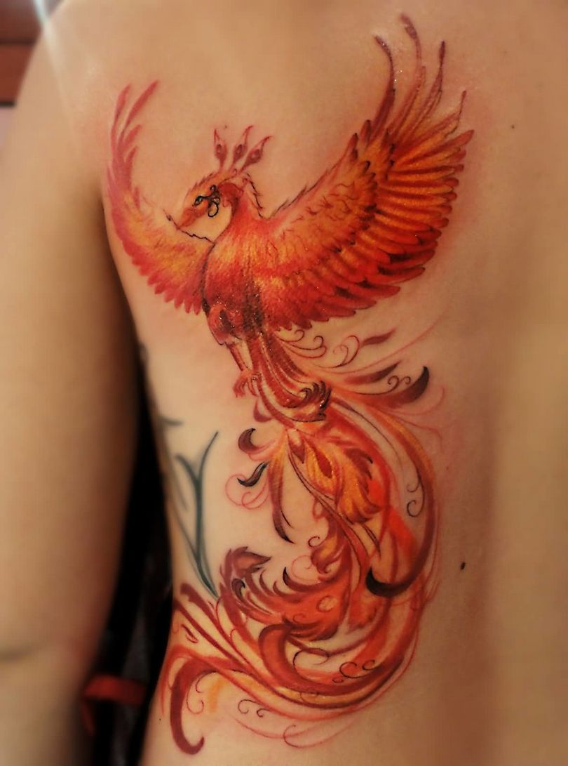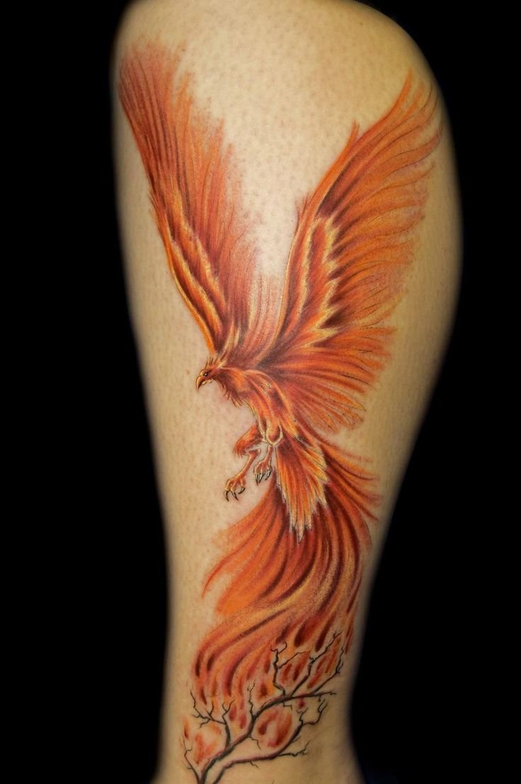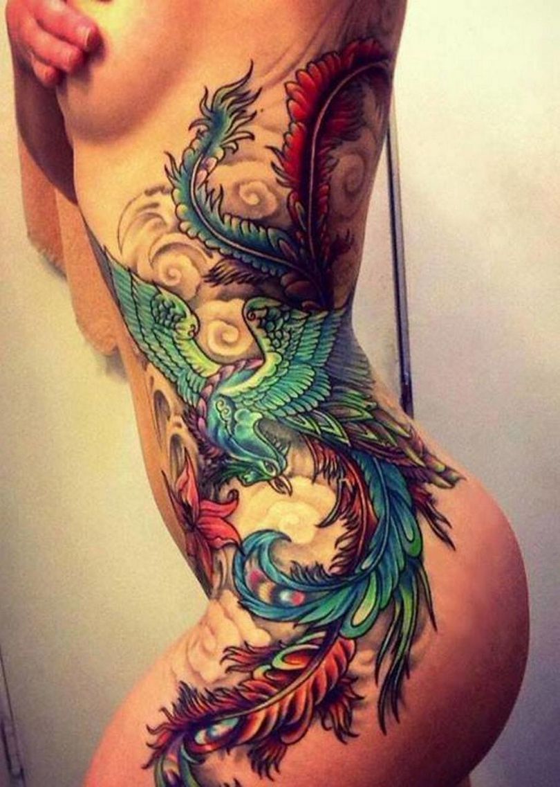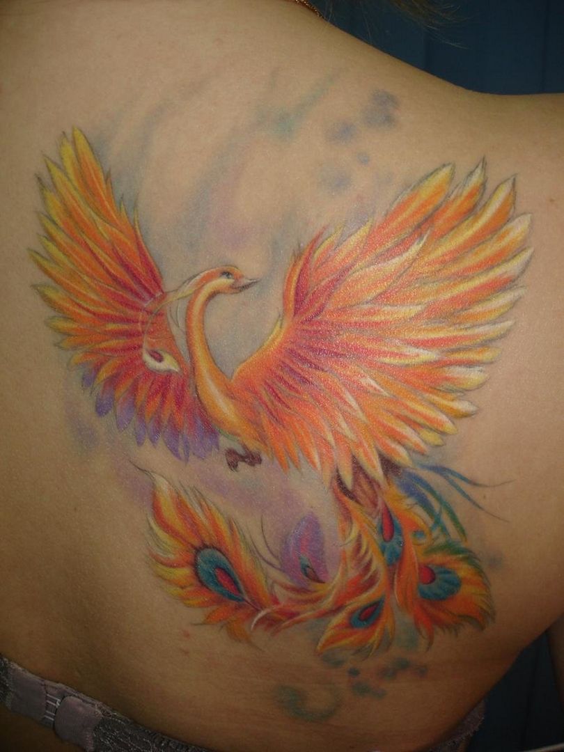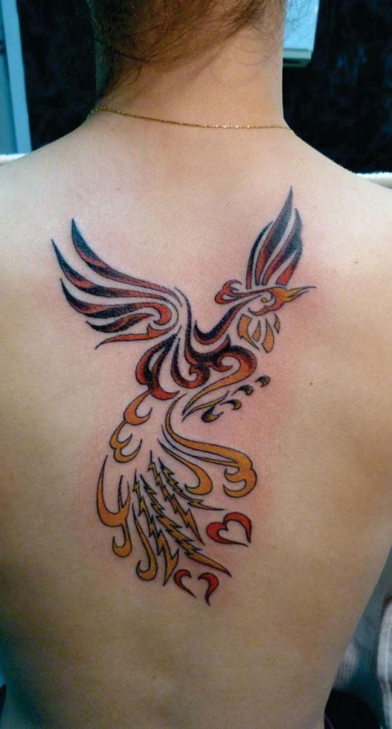 Tatouage de l'oiseau de feu - significations pour les filles et les hommes, le lieu d'application (sur le bras, la cuisse, le dos, le ventre), de beaux dessins et des idées de photos