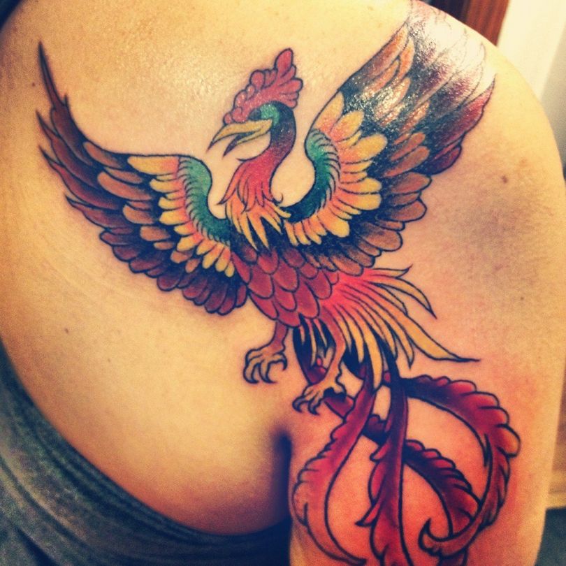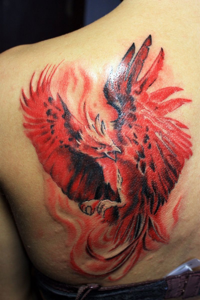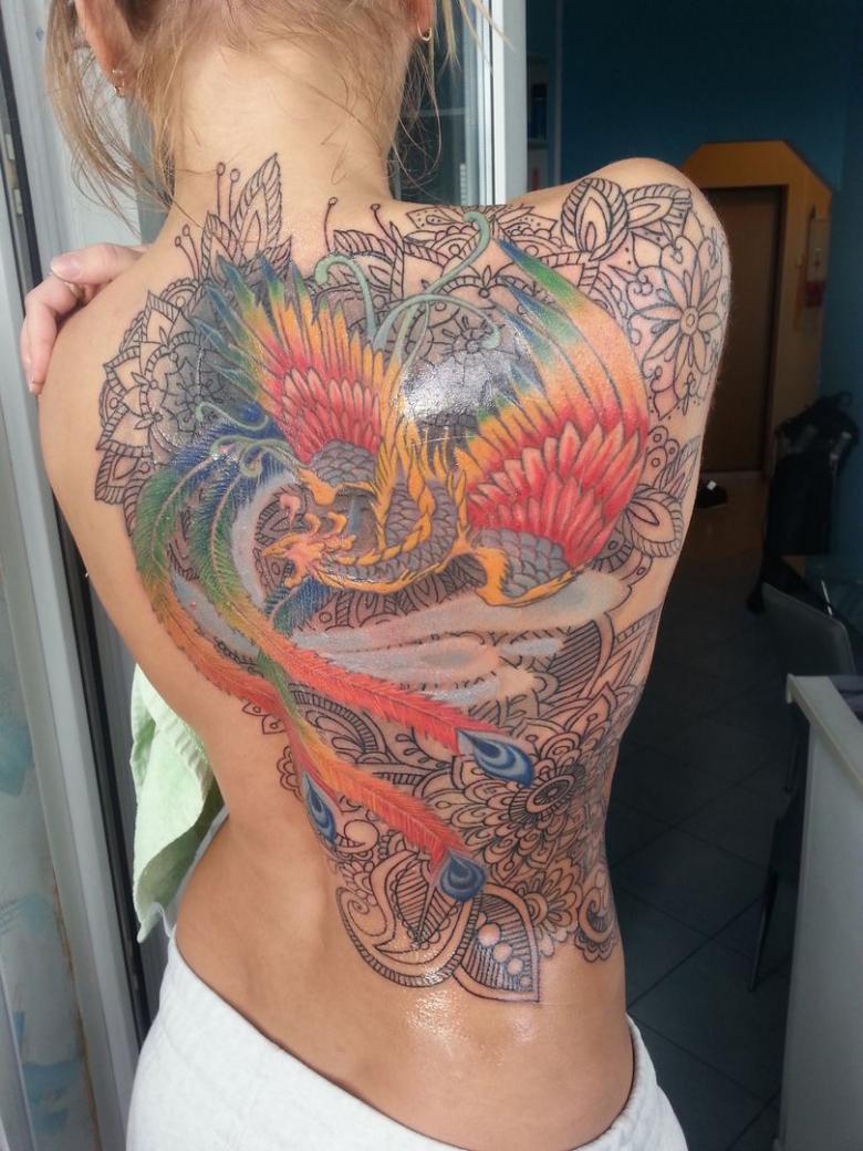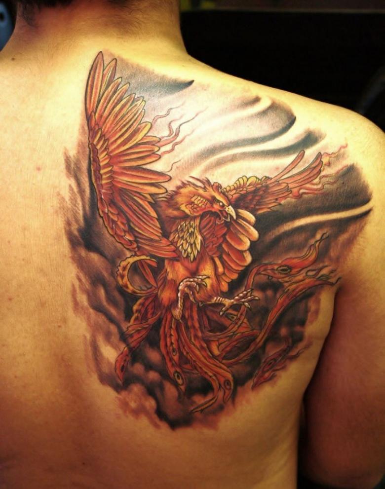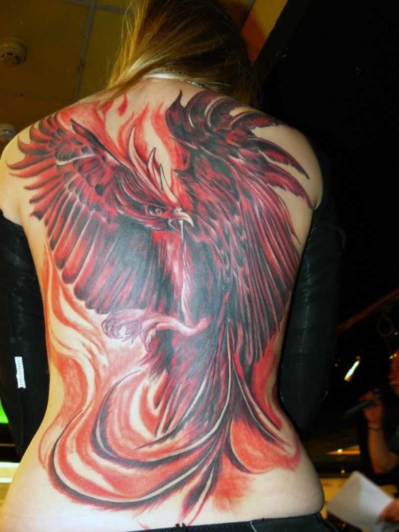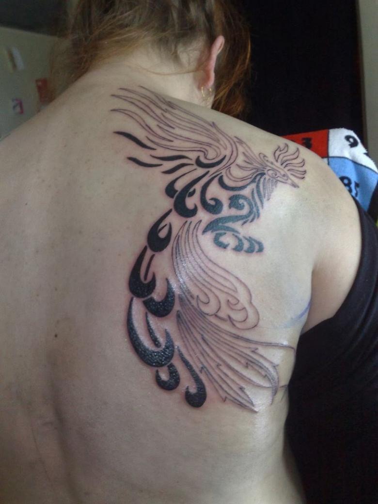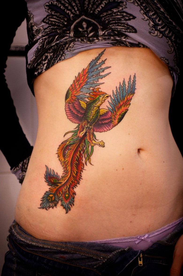 Tatouage de l'oiseau de feu - significations pour les filles et les hommes, le lieu d'application (sur le bras, la cuisse, le dos, le ventre), de beaux dessins et des idées de photos