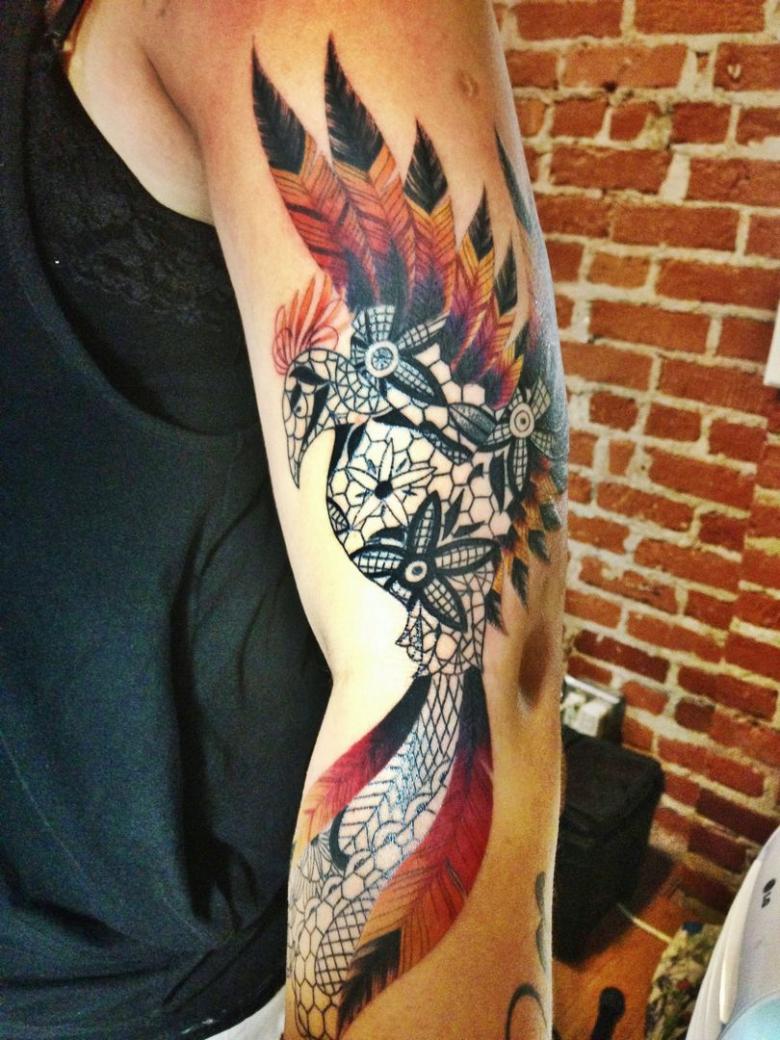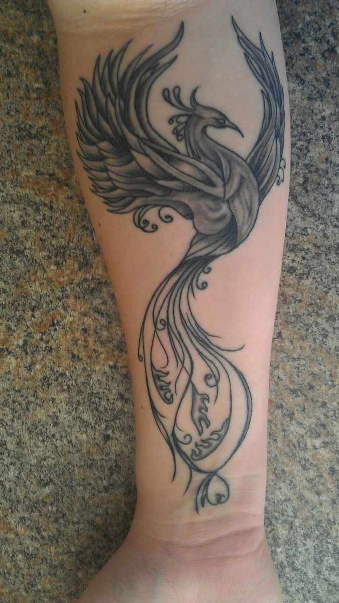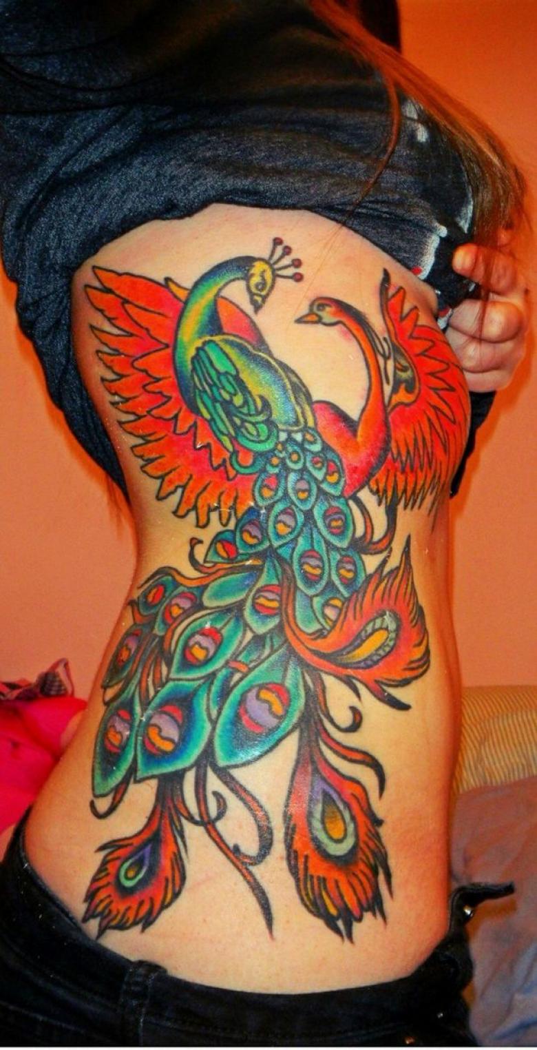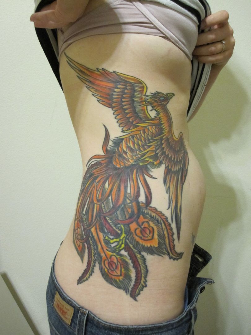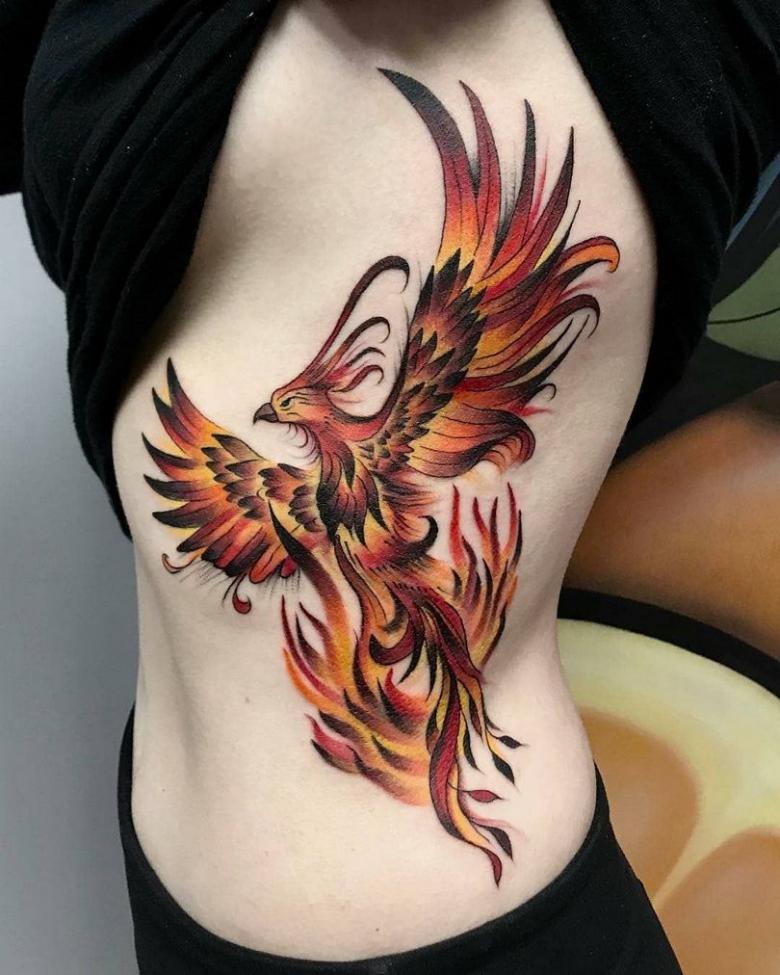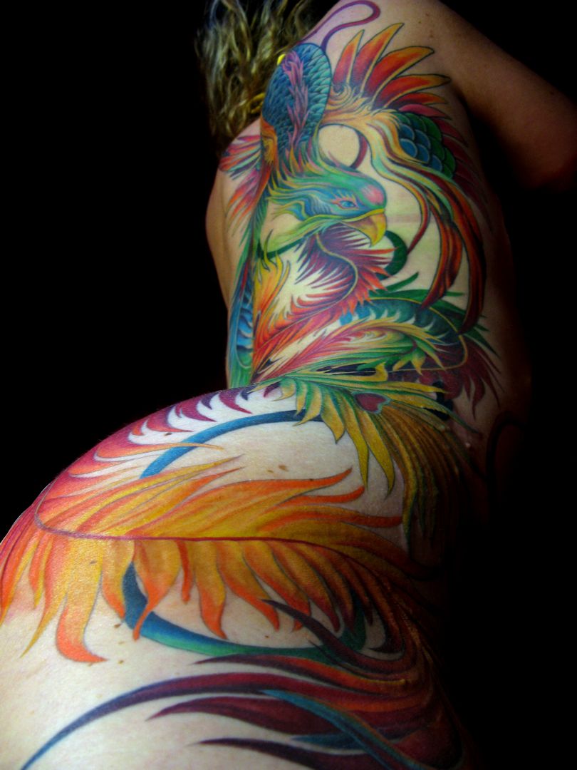 Tatouage de l'oiseau de feu - significations pour les filles et les hommes, le lieu d'application (sur le bras, la cuisse, le dos, le ventre), de beaux dessins et des idées de photos