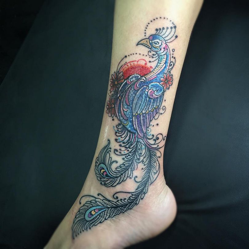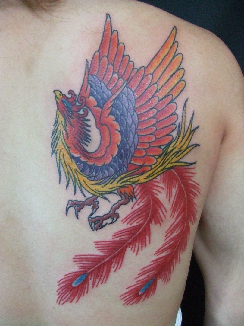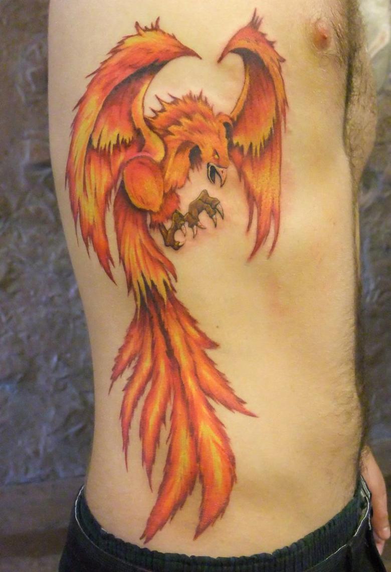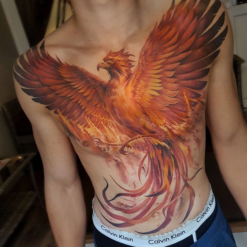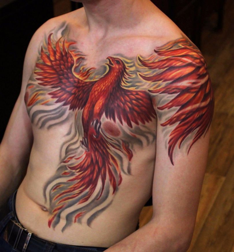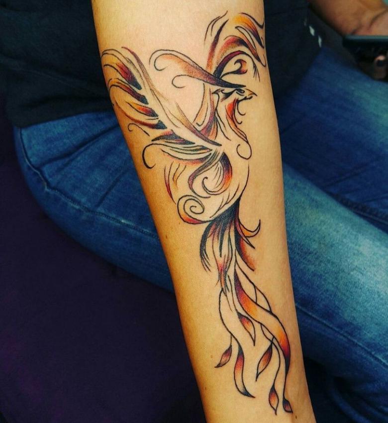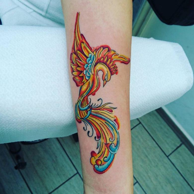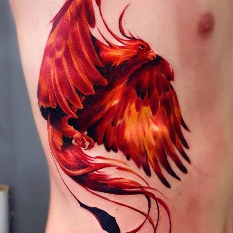 La possibilité de développer un esprit d'entreprise augmentera, car le tatouage attire magnétiquement les personnes qui réussissent et qui entreprennent. Un oiseau de feu gravé sur le corps signifie une intuition accrue et la découverte de talents.