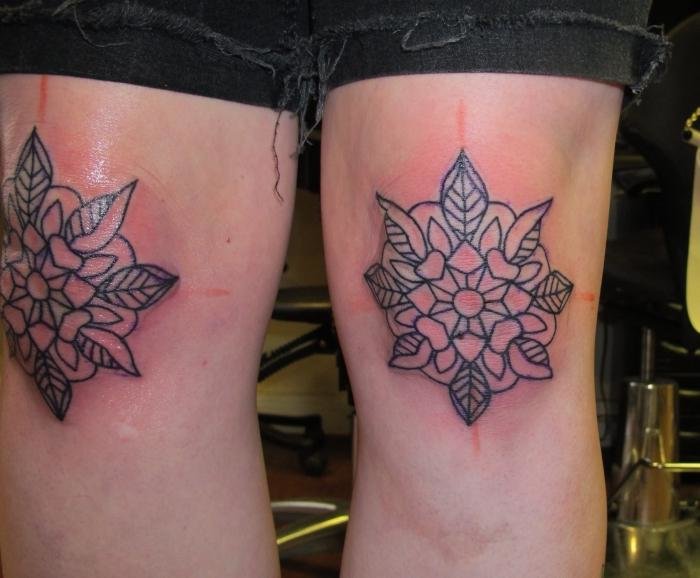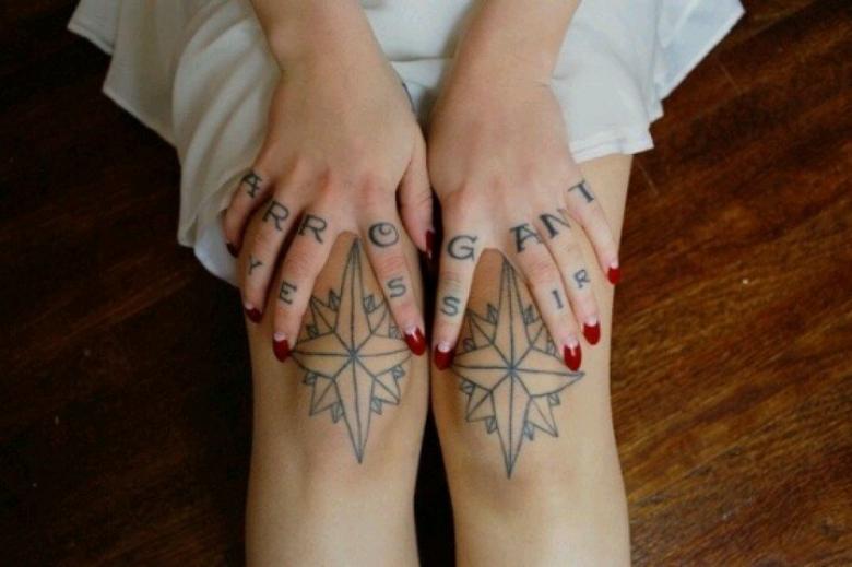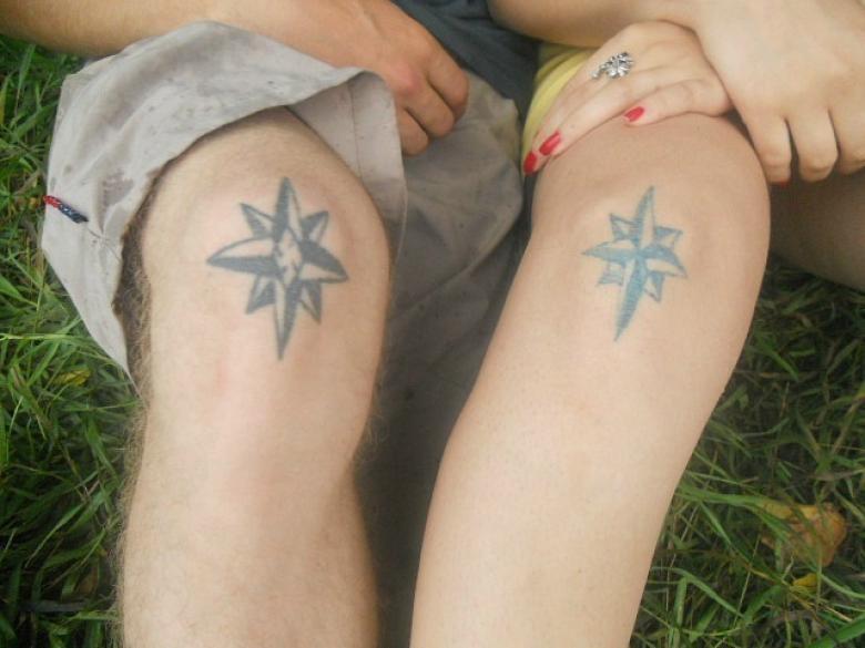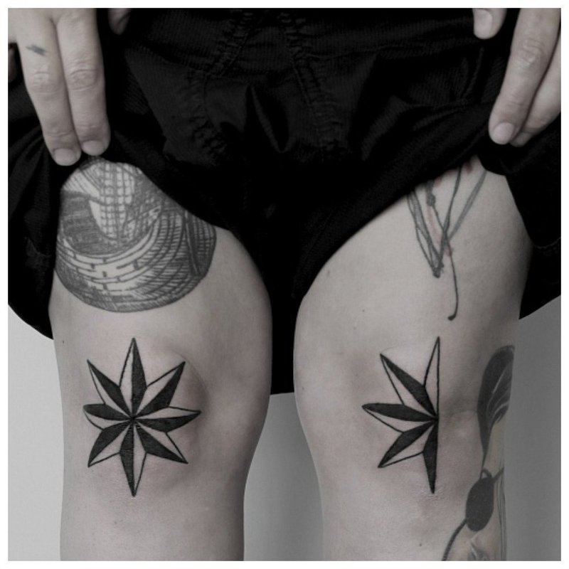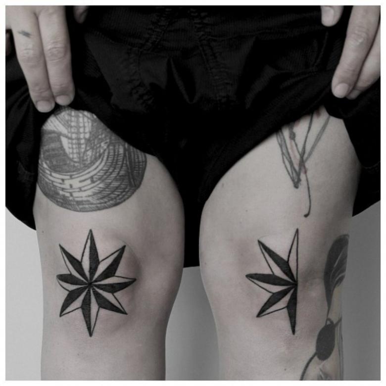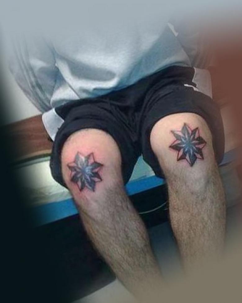 Dans la vie normale, les tatouages dans la région du genou sont peu fréquents et comportent généralement des images d'animaux ou des motifs géométriques. Souvent, le dessin n'est pas seulement localisé sur le genou, mais occupe toute la surface antérieure de la cuisse ou de la jambe inférieure. Mais les étoiles sur les genoux des gens ordinaires ne s'appliquent que très rarement.