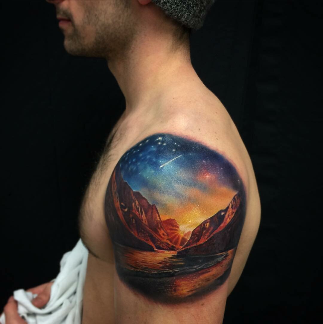 Quelle est la meilleure façon de capturer votre endroit préféré ? Utilisez un tatouage de style réaliste qui capture chaque détail du paysage que vous aimez. Qu'il s'agisse d'un coucher de soleil sur la plage ou de l'éclat de la lune la nuit, l'artisan talentueux peut réaliser n'importe quelle idée.