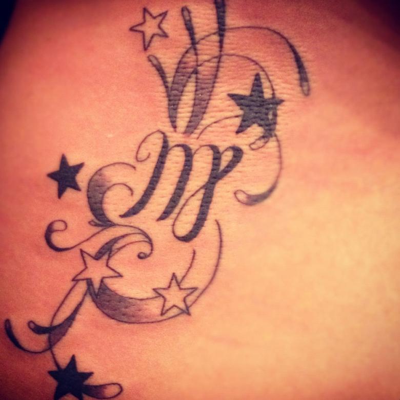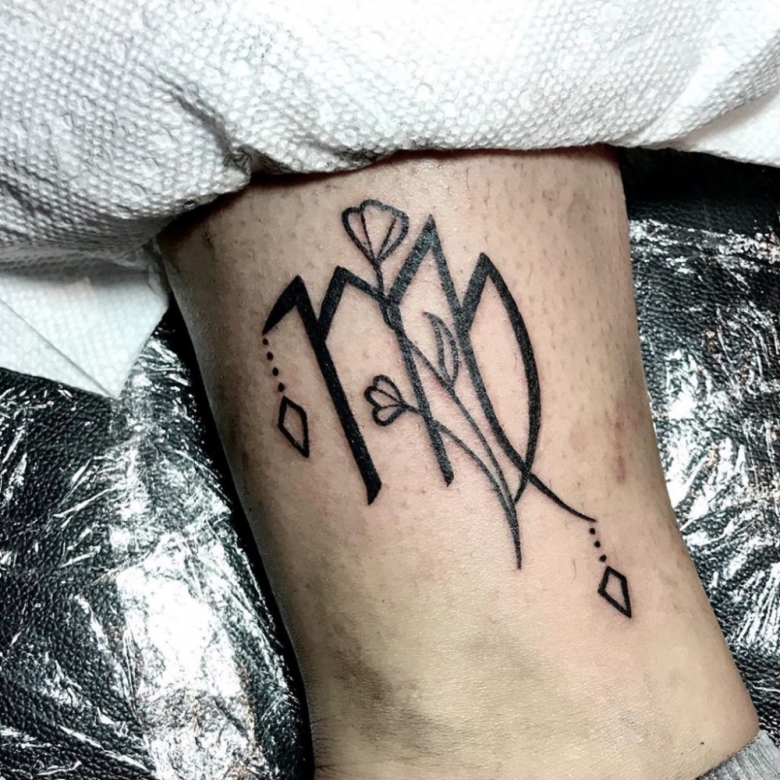 Le symbole est exécuté en deux variantes. La plus simple est la lettre "M". Un tatouage plus coloré est celui de la constellation de la Vierge. La signification dépend du choix de l'un d'entre eux. Le plus souvent, c'est la deuxième option qui est choisie.