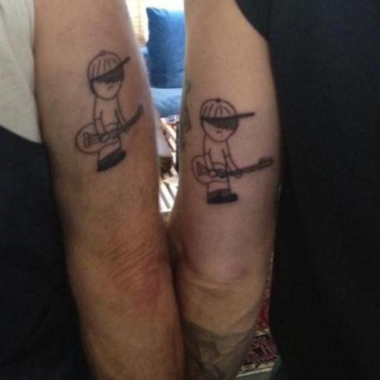 Sur le côté du dos, un petit guitariste est représenté sur l'épaule gauche. Voici un autre des dessins de Jack.