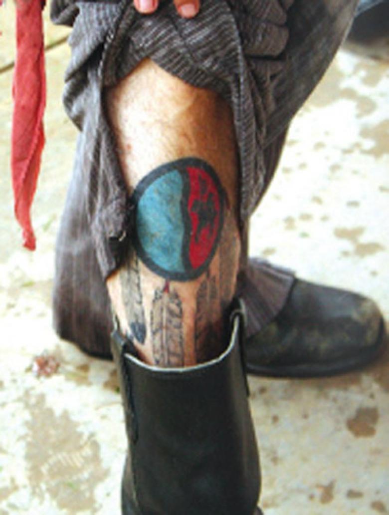 Un autre tatouage avec un motif indien - un serpent dans un ovale. Ce tatouage a été fait en même temps que celui de l'attrape-rêves. C'est là qu'il a été accepté dans la tribu Comanche.