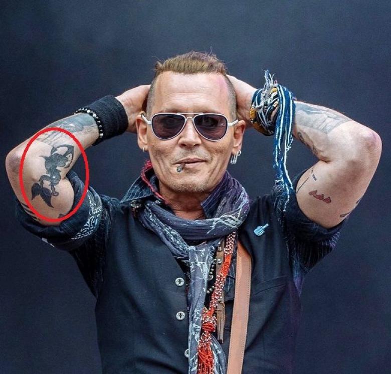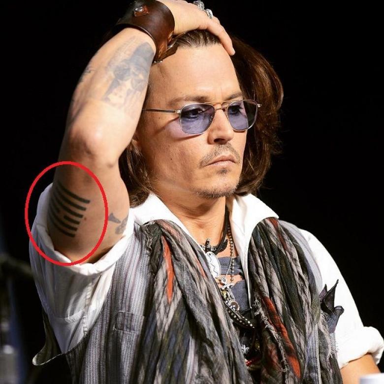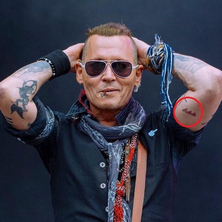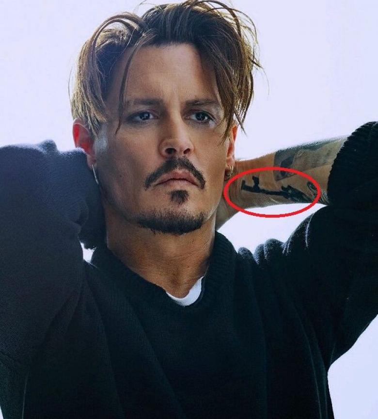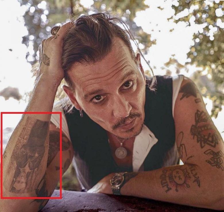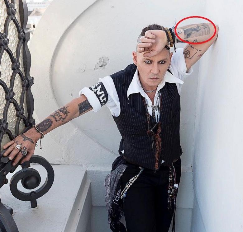 Les bras de l'acteur sont particulièrement riches en tatouages. Les dessins qui y figurent permettent de découvrir les racines de Johnny, ses personnes préférées, ses rôles favoris et bien d'autres choses encore.