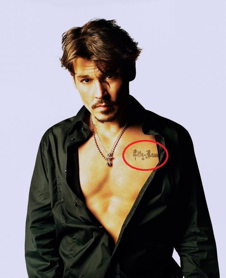 Depp a le nom de sa fille par Vanessa Paradis tatoué sur le côté gauche de sa poitrine. Depp adore cette fille, il a donc décidé de la garder près de son cœur.