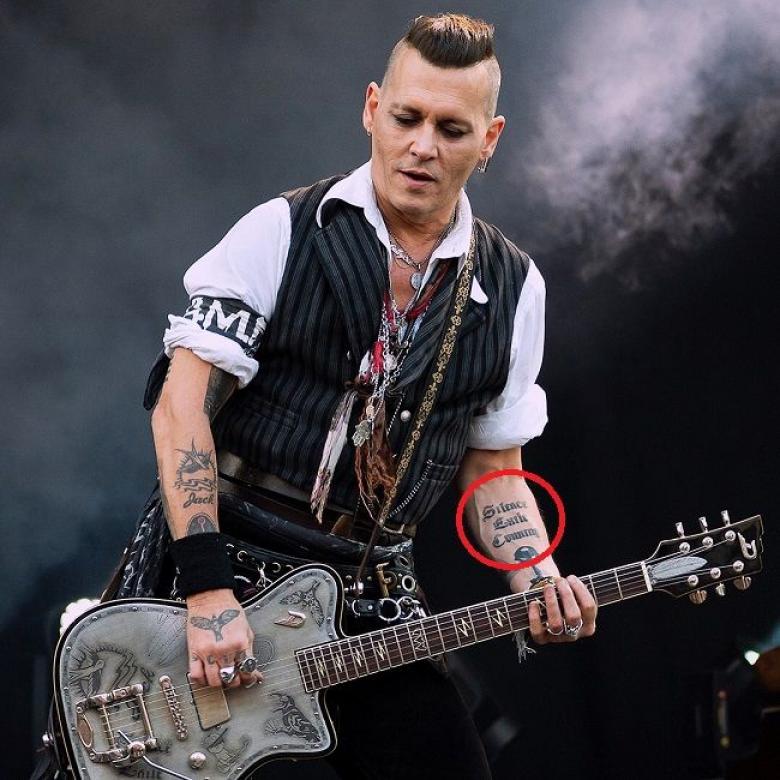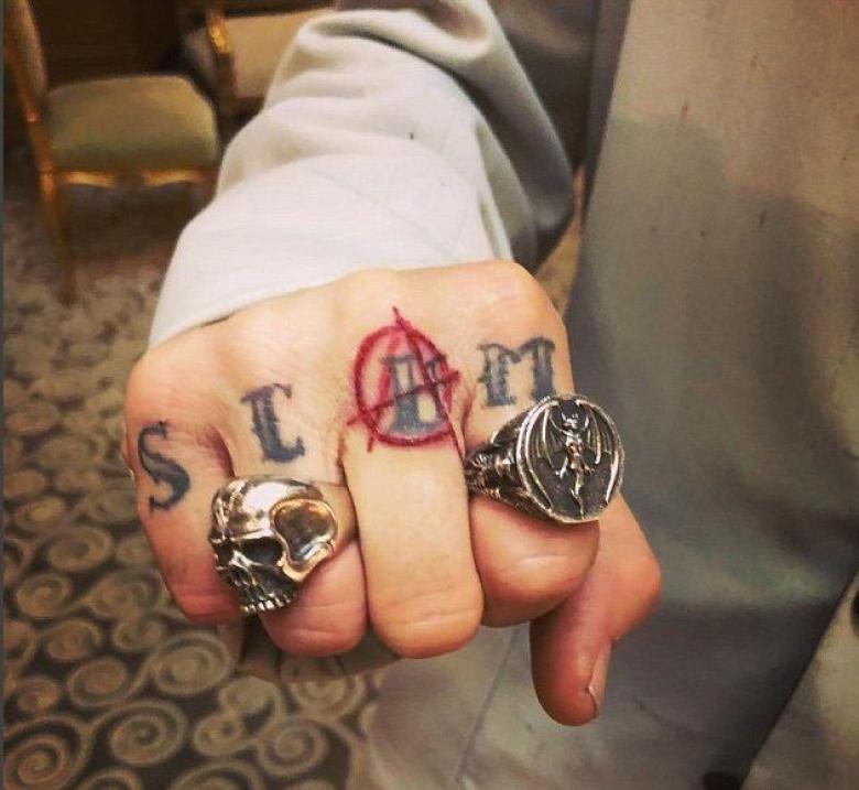 Quand il a commencé à sortir avec Amber Heard, Johnny s'est fait tatouer le mot "SLIM" sur les doigts. Par ce mot, il dénote la fragilité de sa bien-aimée. Puis une rupture a suivi et le mot a été remplacé par "SCUM". C'est-à-dire qu'il a trouvé la relation avec elle, ou elle-même, répugnante. Le changement ne s'est pas arrêté là. En modifiant légèrement la deuxième variante, nous avons obtenu le mot SCAM. Cela s'avère déjà être une tricherie.