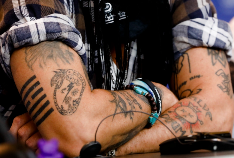 Le signe Z comanche (zigzag) est également tatoué pour commémorer l'acceptation de Johnny dans la tribu indienne.