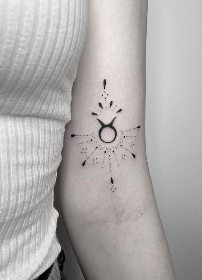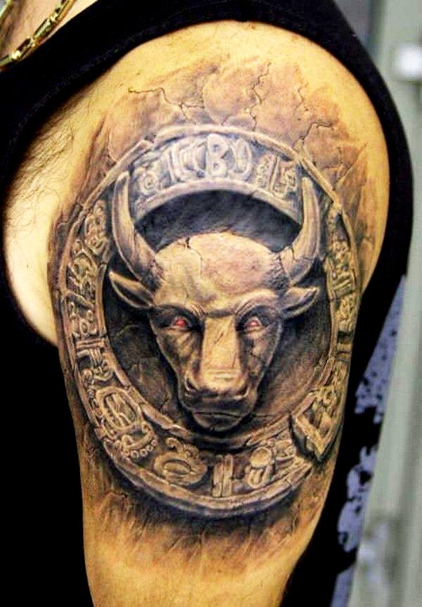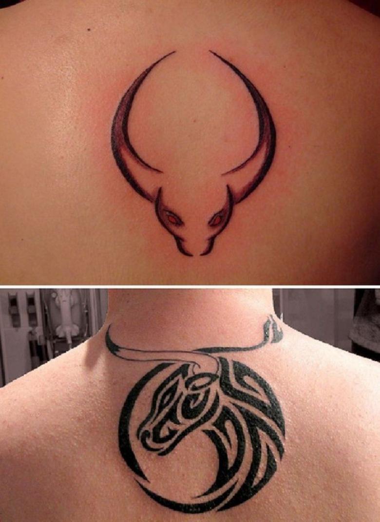 Le tatouage du signe du zodiaque Taureau ouvre de grandes possibilités à l'imagination. Ils peuvent être exécutés dans des styles tant réalistes qu'ethniques en utilisant une variété de motifs et de formes géométriques. Certains fans de l'art corporel se tatouent le signe du Taureau, en utilisant des peintures historiques et des compositions sculpturales.