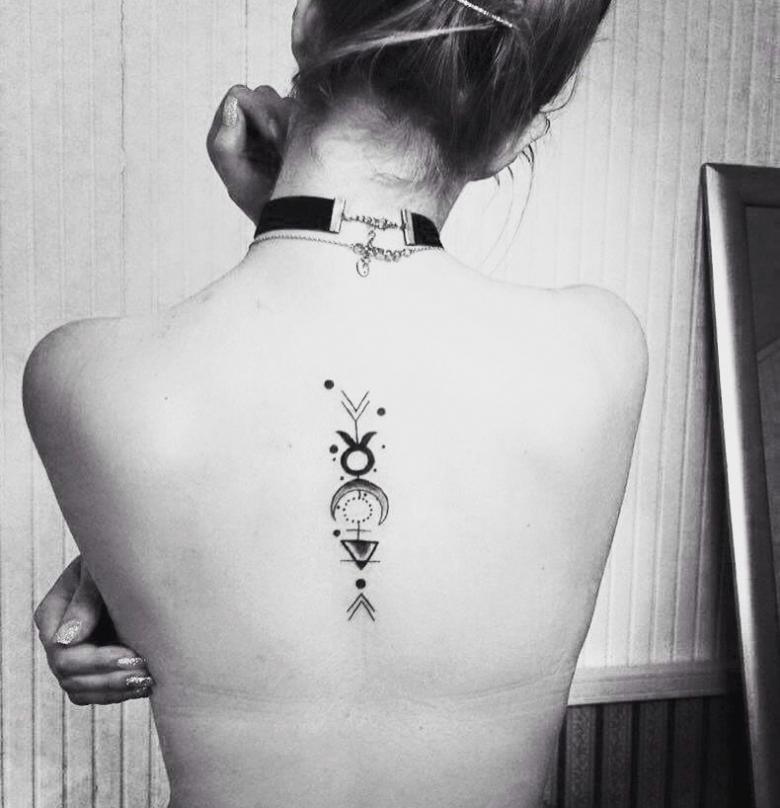 Généralement, le tatouage Taureau pour les filles se présente sous la forme d'un symbole soigné, qui peut être complété succinctement par le nom de la personne ou une date importante de sa vie. Malgré la petite taille du symbole, il signifie le pouvoir et l'autorité de celui qui le porte. Placer une esquisse préférée sur l'épaule indique la protection contre les mauvais esprits et la chance dans les relations amoureuses. Les individus créatifs tatouent la constellation du Taureau. Le plus souvent, ces motifs discrets sont embossés sur la clavicule, le cou ou le bras.