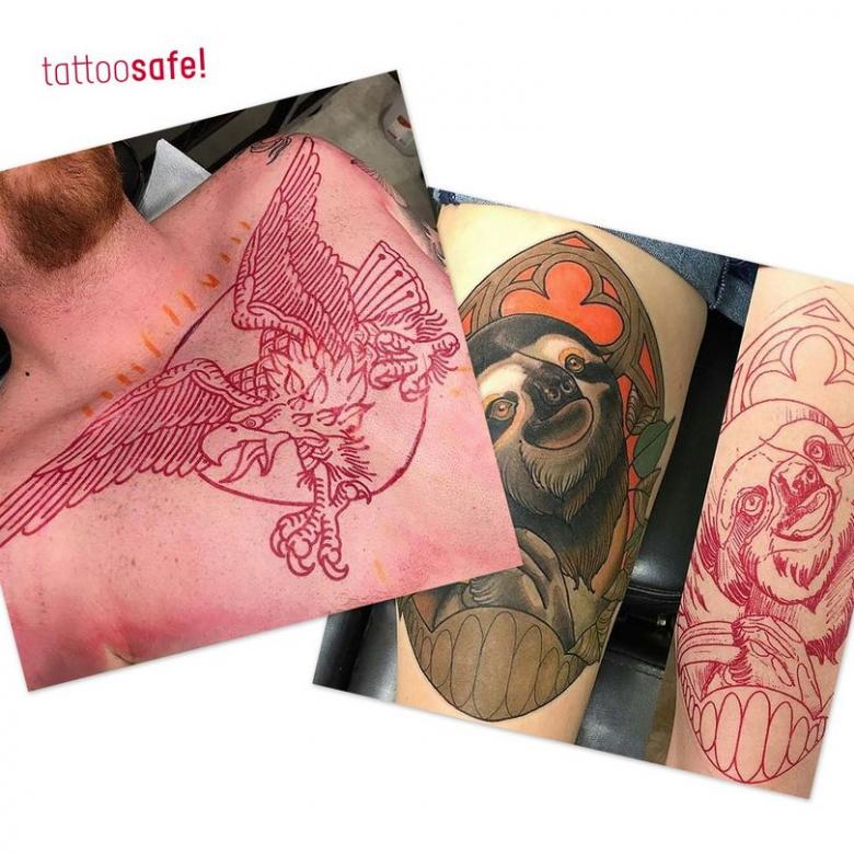 Si la zone de la peau le nécessite, la peau doit être exfoliée et épilée. En cas de mauvaise traduction, l'image peut être immédiatement essuyée avec de l'alcool, un gel spécial pour enlever le motif. Laissez la peau sécher et une fois qu'elle est sèche, le transfert peut être tenté à nouveau.