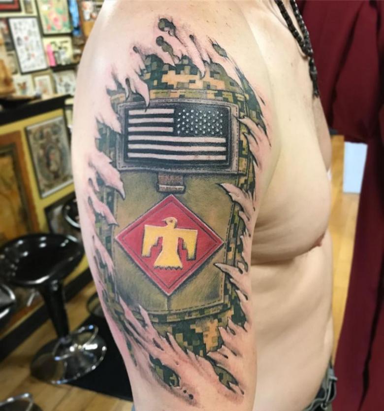 L'histoire des tatouages militaires remonte à des temps très anciens. Autrefois, il s'agissait de marques d'identification en cas de décès ou de blessure d'un soldat. Mais aujourd'hui, les tatouages ont trouvé un nouveau souffle auprès de ceux qui ont fait leur temps et qui veulent souligner leur statut.