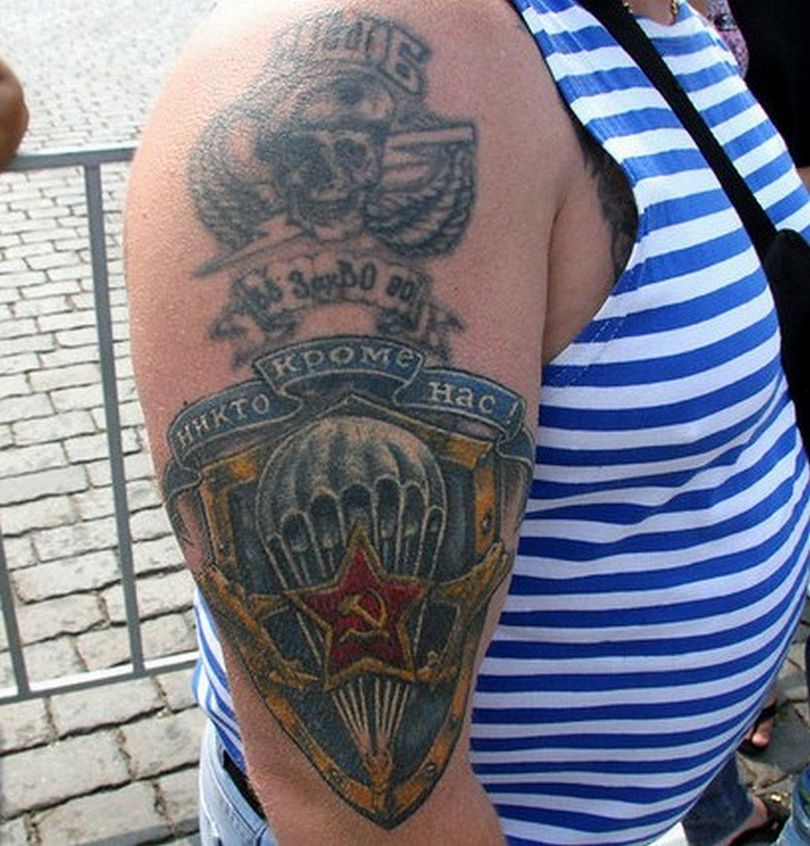 Pour un militaire, un tel tatouage n'est pas un ornement décoratif, mais une partie importante de sa vie. Grâce à elle, vous pouvez savoir si une personne a servi ou non. Quelle était la branche de l'armée, dans quelle région le service a eu lieu, le grade, en quelles années le service a eu lieu, et même s'il a pris part à des opérations de combat.