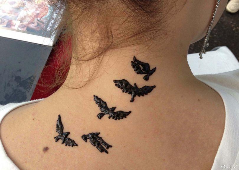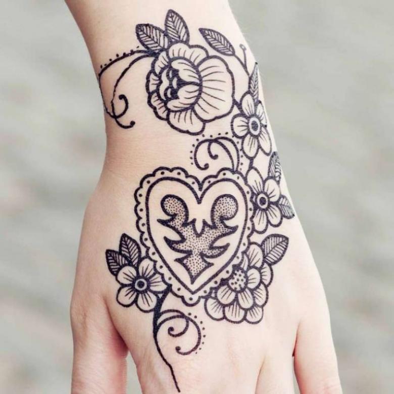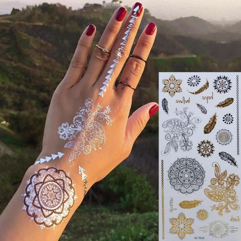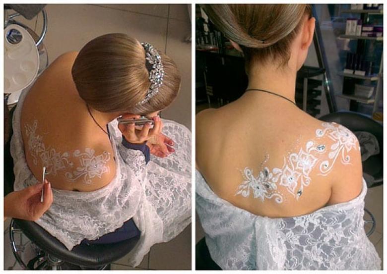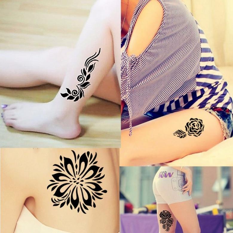 Avec l'aide d'un pochoir, le temps nécessaire à cette procédure est considérablement réduit. Le tatouage est permanent et peut être retiré avec de l'alcool médical ou une solution spéciale. Ce type d'art corporel est populaire pour les mariages et les fêtes de plage.