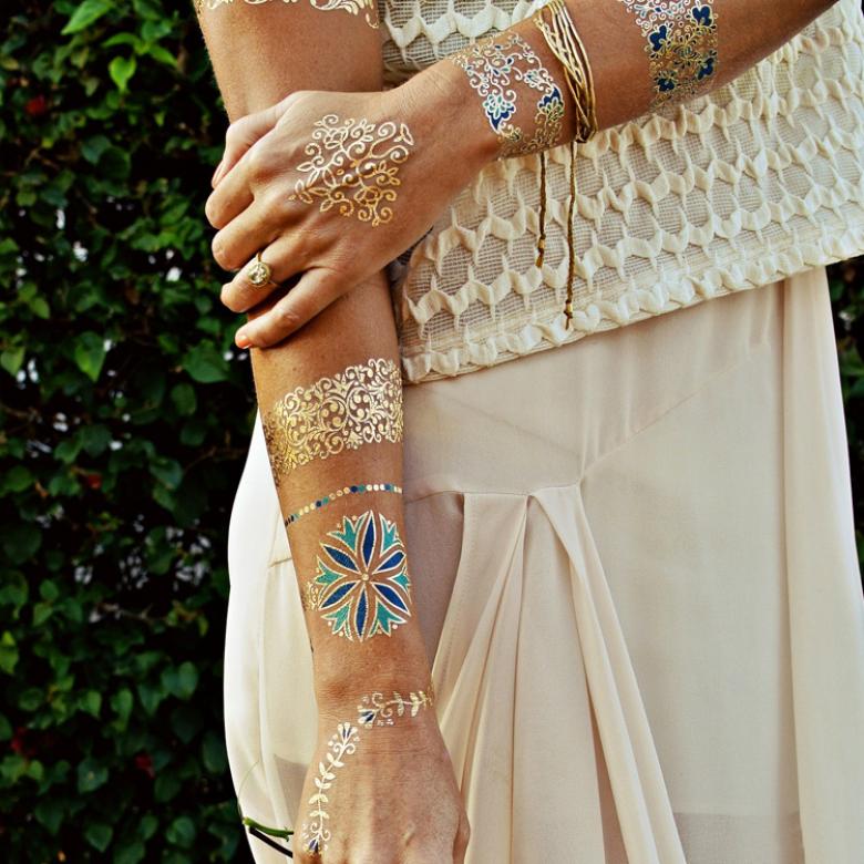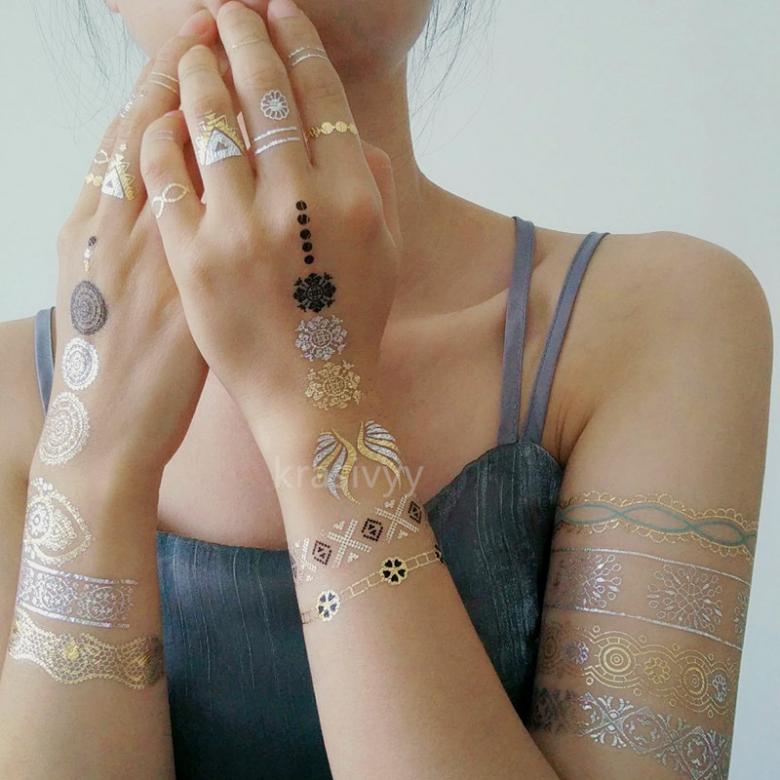 Ce type de tatouages temporaires est conçu spécifiquement pour les filles qui ne sont pas assez éparpillées de pierres sur leurs vêtements. Grâce à un mélange spécial de colle organique et de cristaux, des motifs complexes sont créés pour orner les zones exposées du corps.