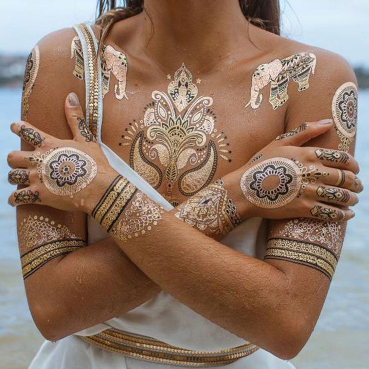 Pour appliquer ces motifs, vous pouvez utiliser des pochoirs prêts à l'emploi, dessiner sur des croquis ou faire appel à votre propre imagination. Bien sûr, ces tatouages ressemblent moins aux tatouages permanents, mais ils sont très impressionnants sur le corps. Le Mehendi est considéré comme la technique de décoration du corps la plus durable avec des dessins. Grâce à l'huile d'eucalyptus, vous pouvez prolonger l'effet du tatouage si vous l'appliquez après le séchage du henné.
