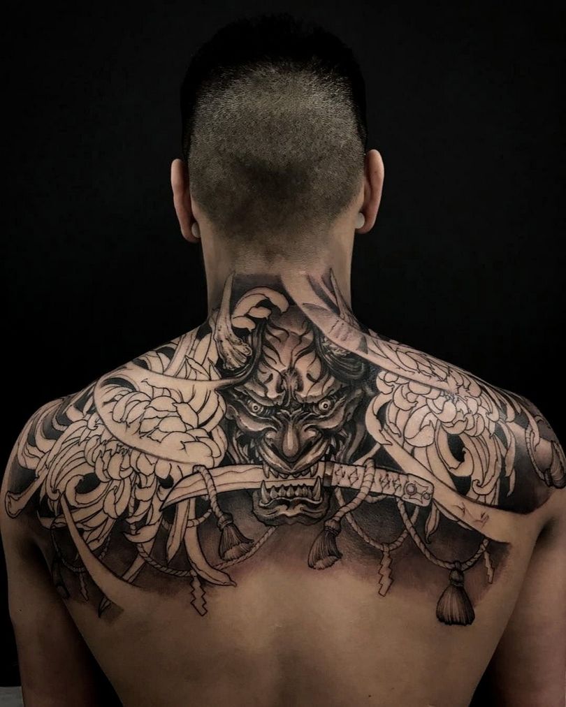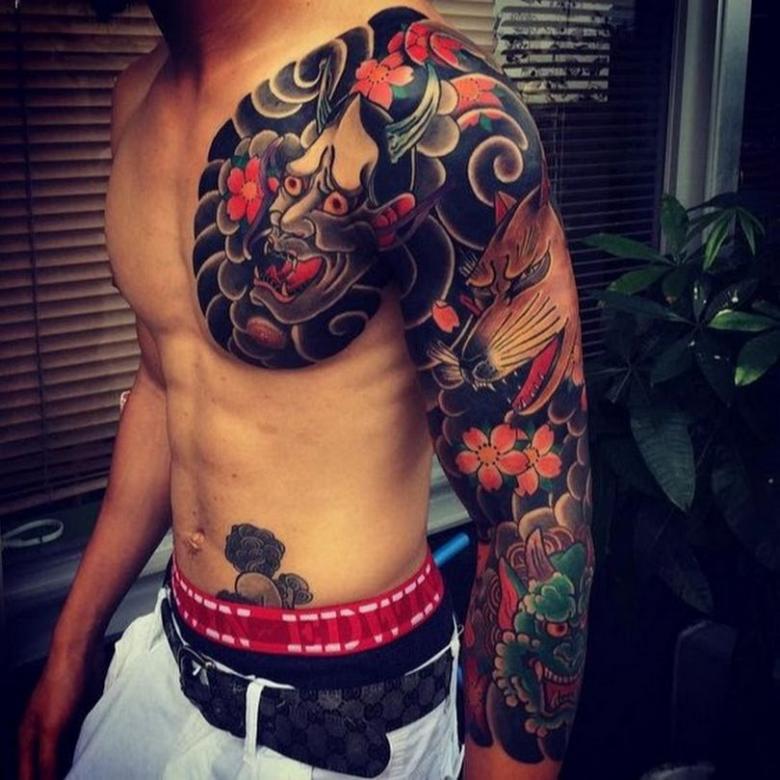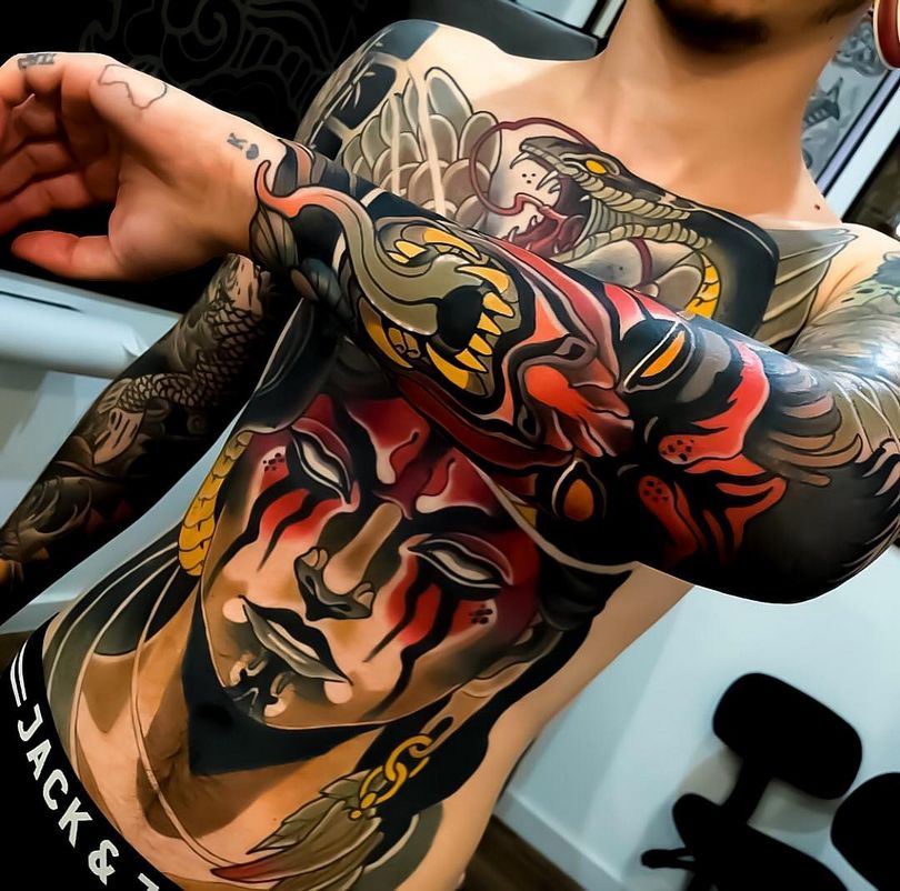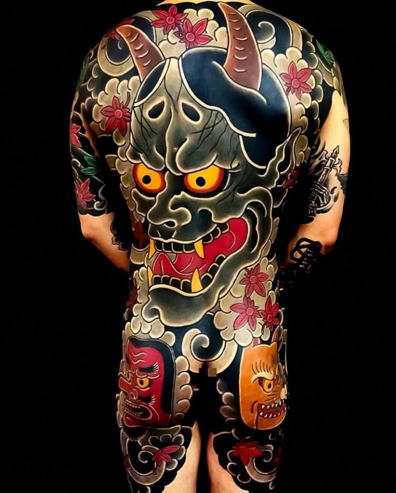 Chez les Japonais, les tatouages représentant des masques de théâtre traditionnels sont particulièrement prisés. L'un des motifs les plus populaires est celui du masque Han.
