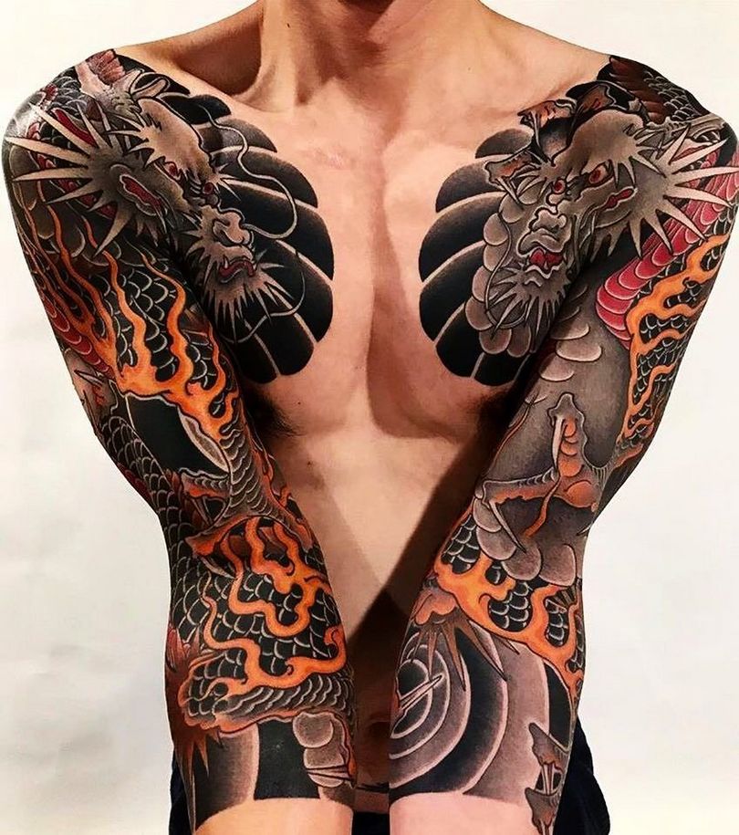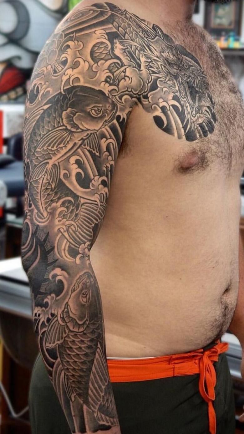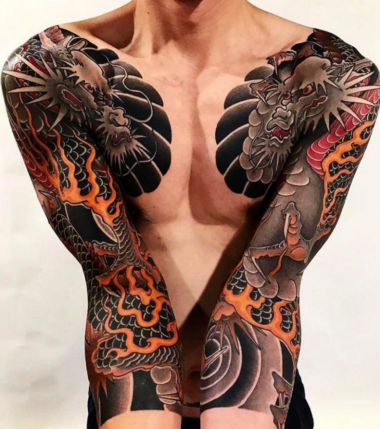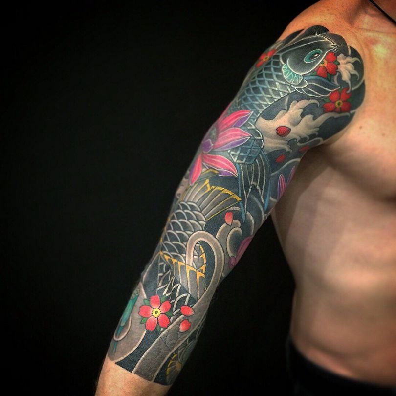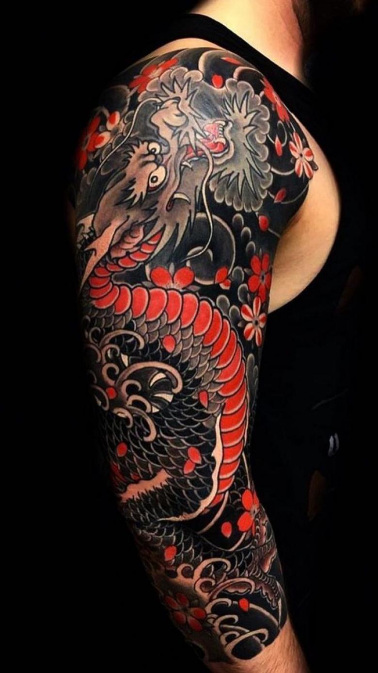 Tatouages japonais pour hommes - motifs de tatouage de style japonais sur le bras, la manche, photos impressionnantes de travail