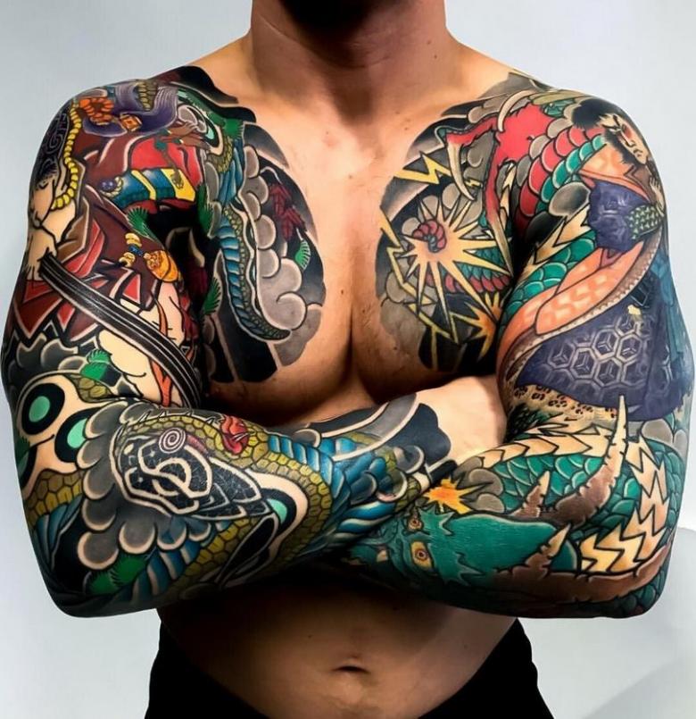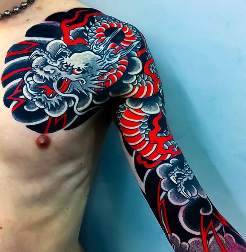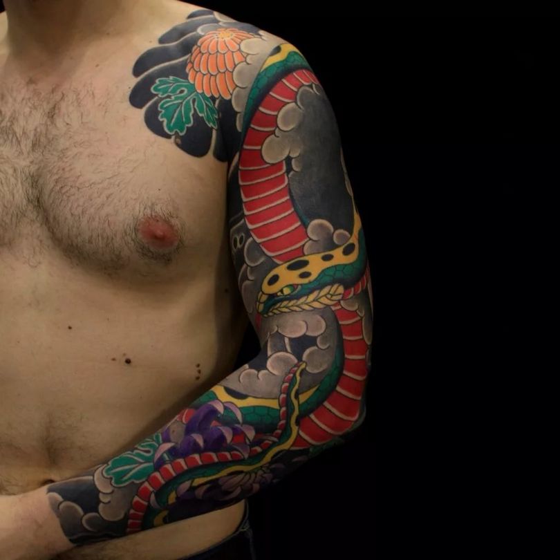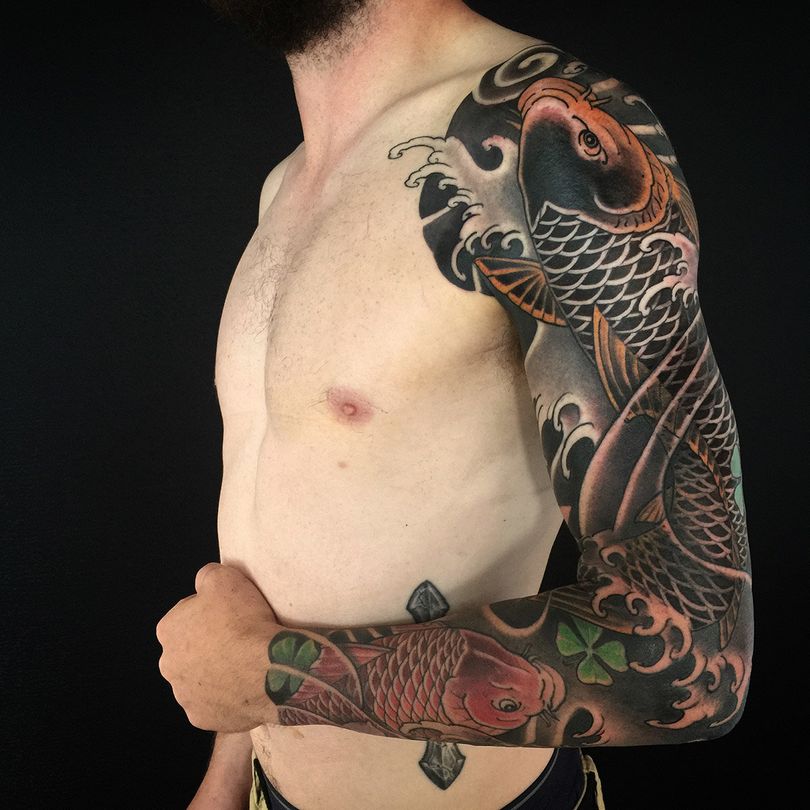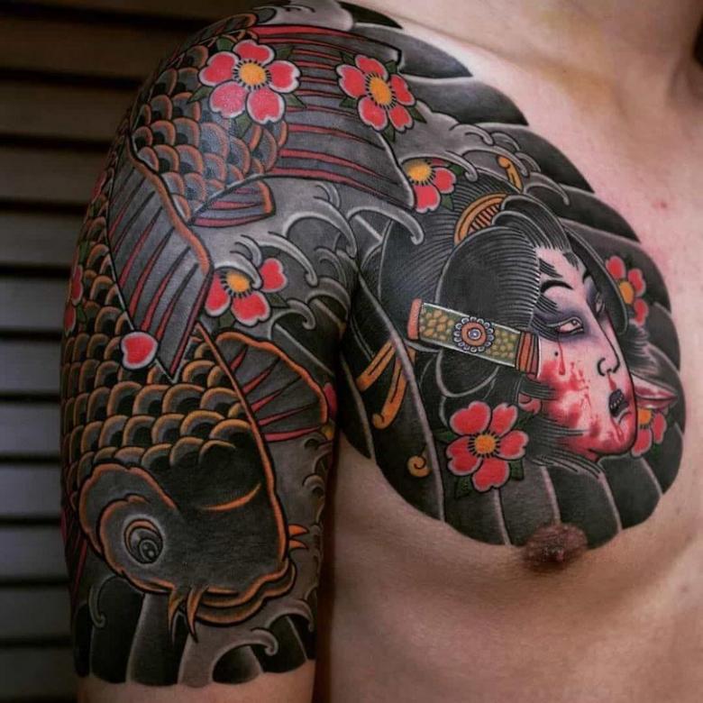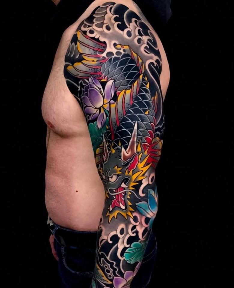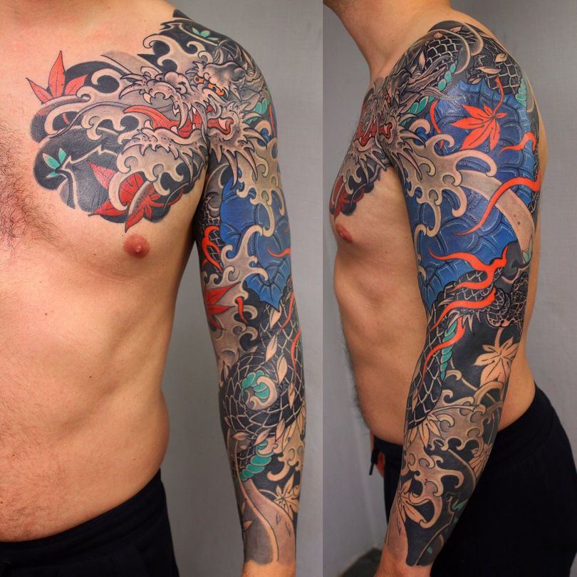Tatouages japonais pour hommes - motifs de tatouage de style japonais sur le bras, la manche, photos impressionnantes de travail