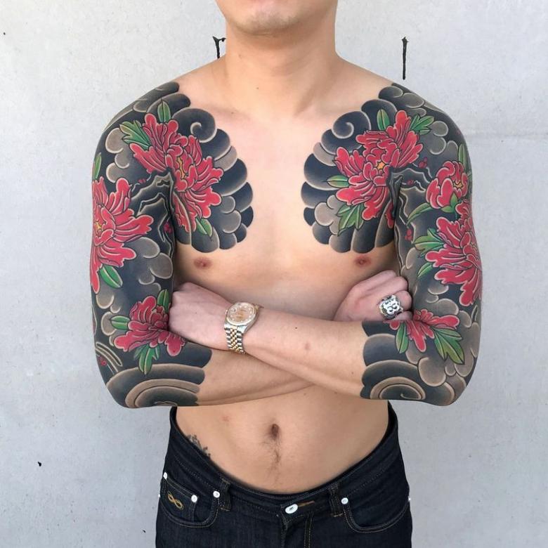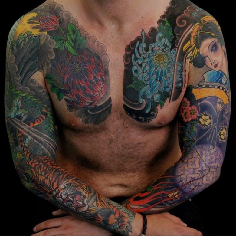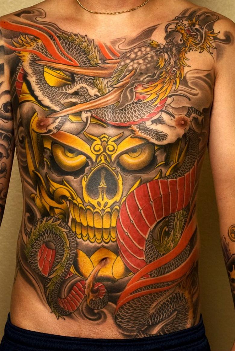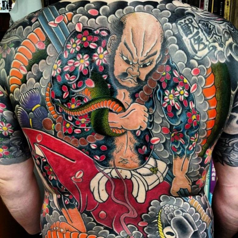 La peinture à grande échelle d'une grande partie du corps était jusqu'à récemment la marque de fabrique des Yakuzas, la mafia japonaise. Pour les hommes modernes, un torse peint n'est plus un symbole de gang mais un symbole d'intrépidité. L'image d'un samouraï, chevalier japonais, est interprétée comme un signe de loyauté et d'intégrité, un désir de servir son pays.